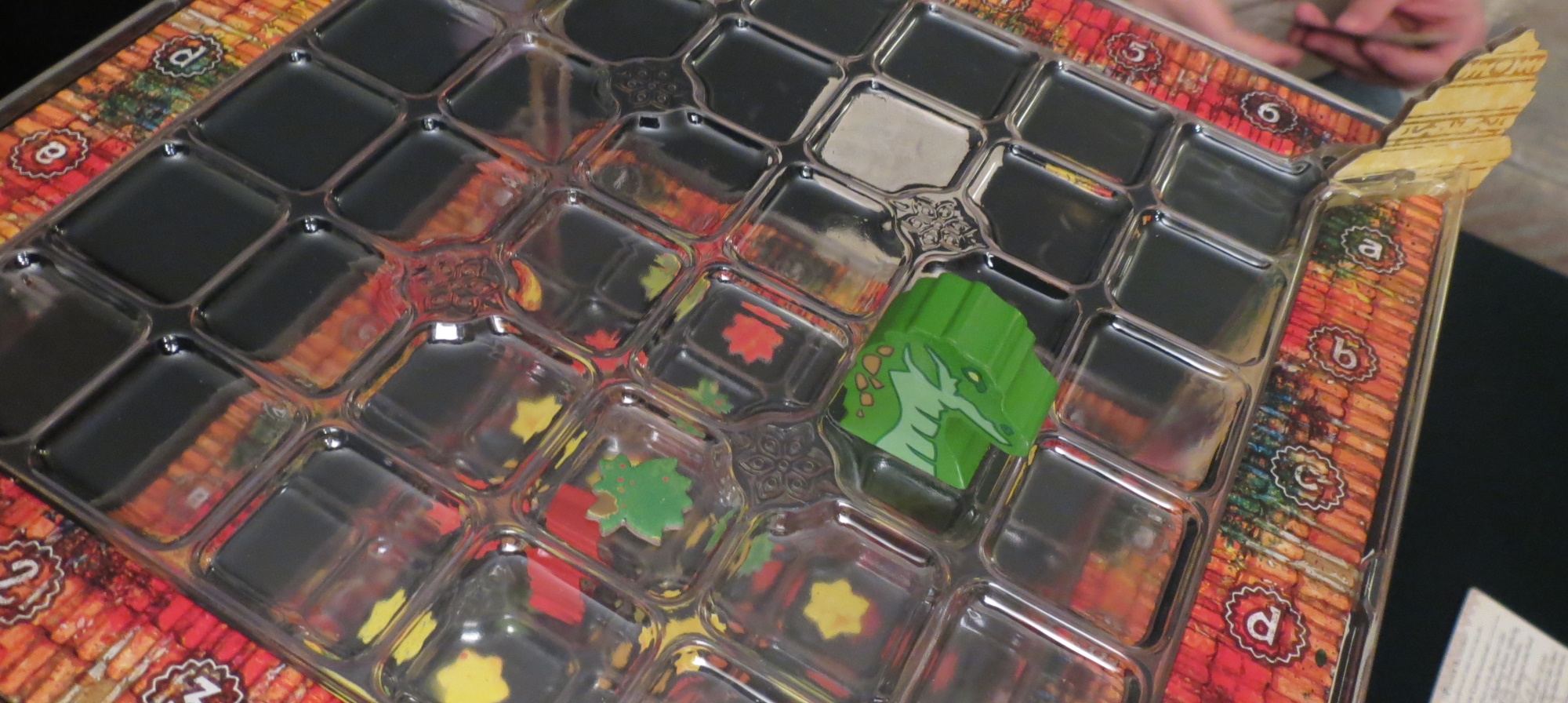 Rather, the whole thing is just so sterile. The pattern cards are arranged so similarly that paffing somebody with color means you’ll soon receive a dose of your own. Opportunities for moving up tend to cluster around the same few spaces. The variable scoring and rule cards only alter the contest in minor ways. Sometimes clumps of color are prized, or colors that aren’t covered by another color higher in the courtyard, or you can only move one space unless you spend some candy. These don’t inject energy into the proceedings, only new limitations or quantities to sum. I’m asked to be joyful, but there’s no room for cleverness or discovery or surprise. Only the exchange of color tokens and the collection of sweets that surely signify something, if only I were provided with the slenderest of translations for their missing symbolism.