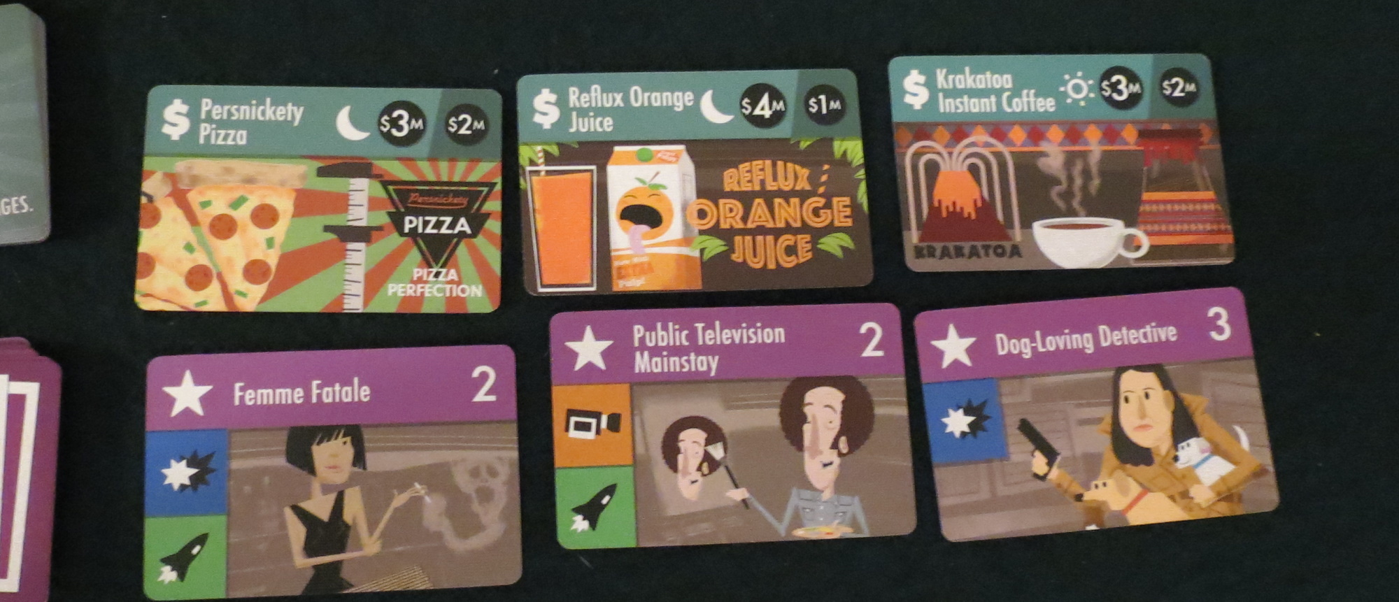 There’s something to be said for the quantity of puns on display here, and I’ll say it: wowza. That’s a lotta puns. It’s the same thought that ran through my head when playing both The Networks and High Rise. If Gil Hova inhabited the Roaring Twenties, when puns were the height of comedy, he’d probably be working some smoky lounge on the Atlantic City boardwalk, dragging a laugh a minute from soused gin-runners.