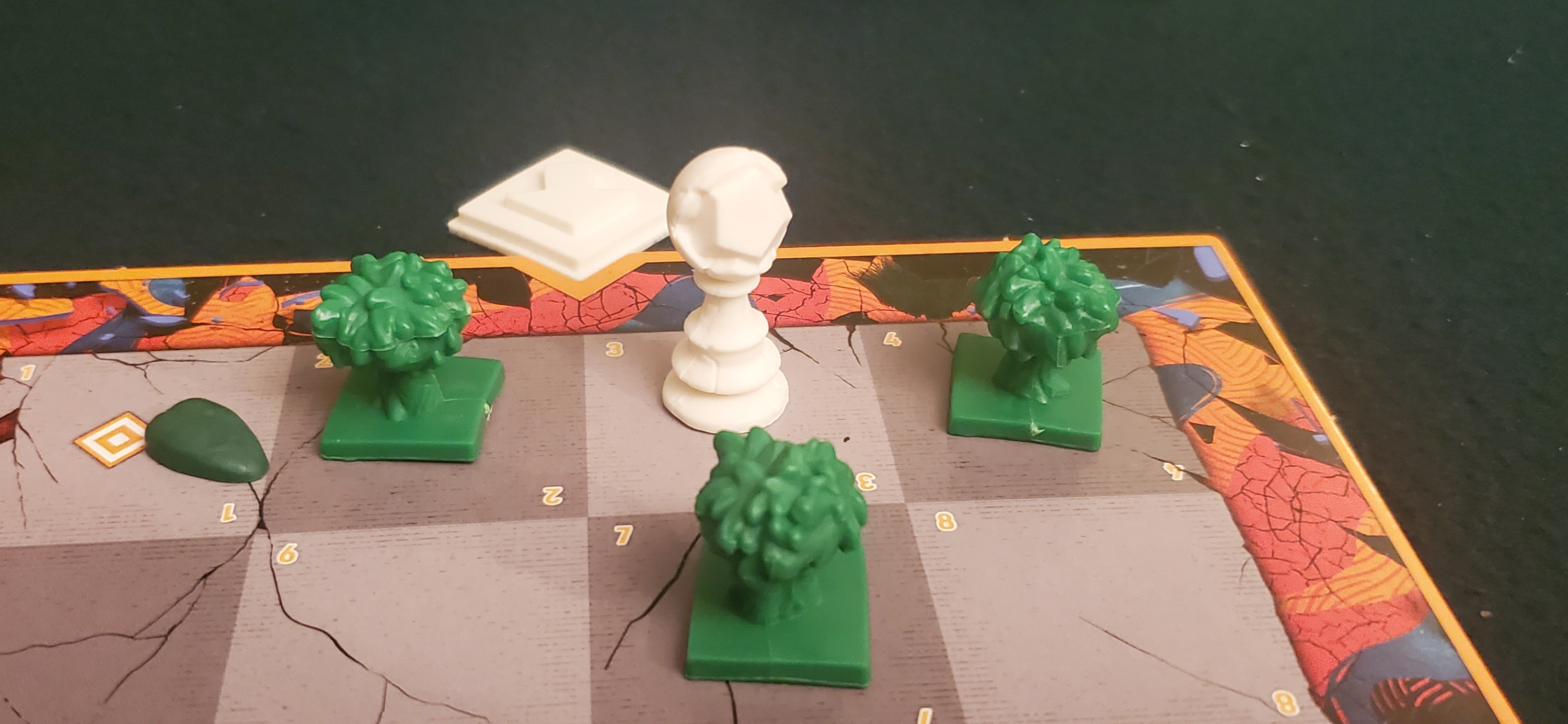 In a sense, we’ve already introduced the Second Rule: time moves forward, but only by adhering to a form of simultaneous logic. If you plant a seed in the past, it’s just a seed. You can walk over the top of it. You can pretty much forget it’s there. In the Present, however, that seed has turned into a bush. Not any old bush. A murder bush. If someone shoves you into the bush, in the exact fashion as shoving somebody into the boundary of a board, you’re squished and killed. And the Future? Well, now the bush has become a tree. A top-heavy tree, perhaps a Monterey Pine or an Acacia, which can be pushed over onto somebody’s head. Who knew becoming a time traveler wouldn’t protect you from such everyday dangers? But here’s the good news: if you’re one turn away from being crushed by a tree, you can command your past self to unplant its seed. No seed, no murder bush, no top-heavy Acacia.