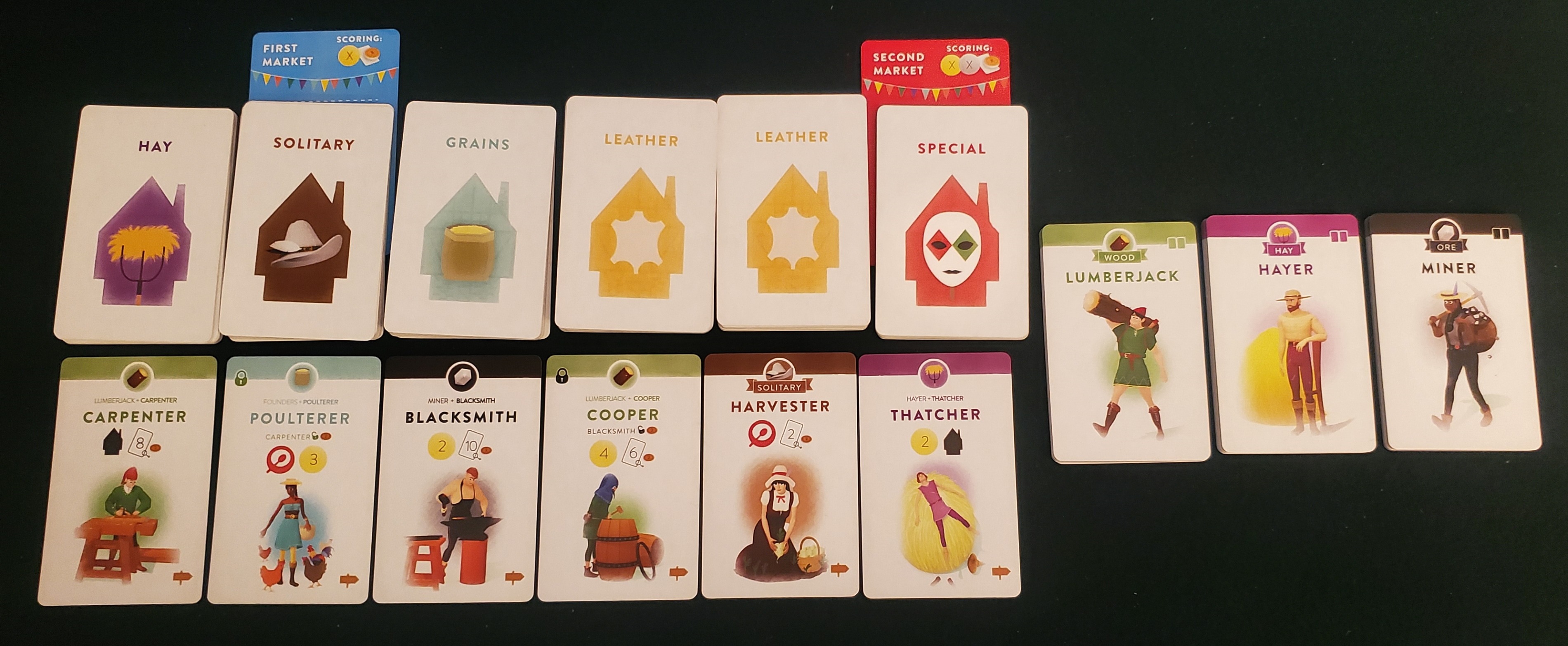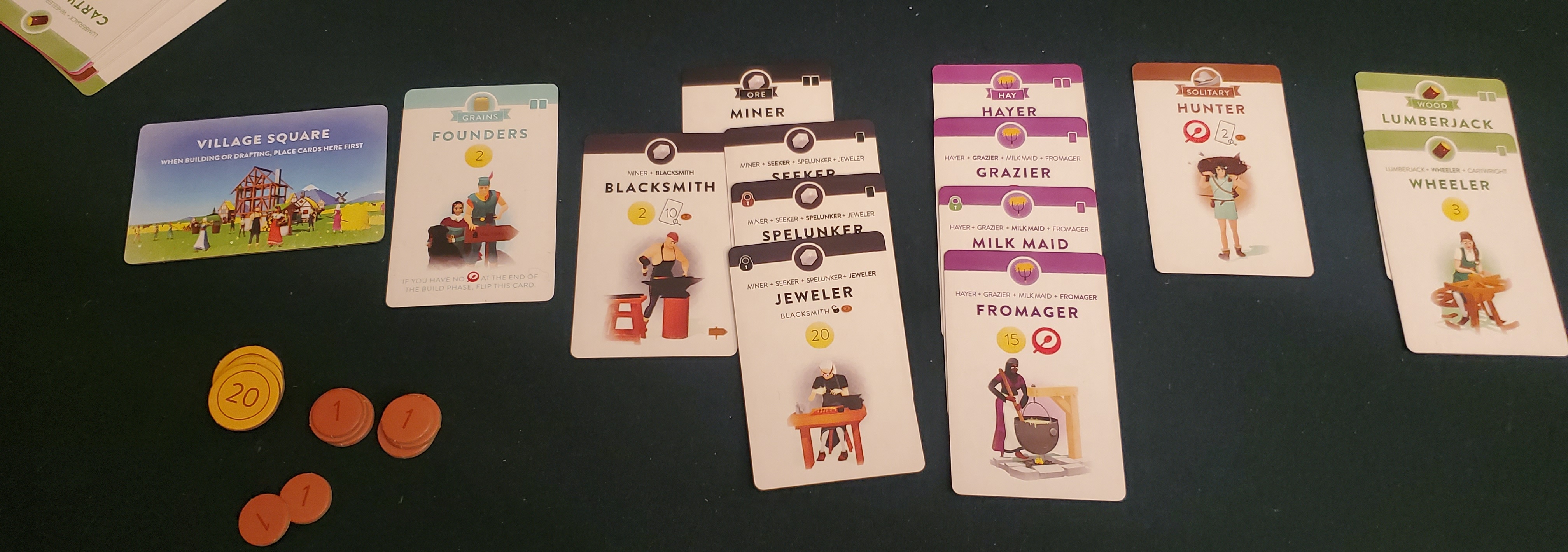 1. I’ve found Villagers to always be an excellent 2 player game, perhaps even a bit cutthroat. The way the road refreshes at two mills through the deck quickly. Table footprint is a touch large, though. I’ve only played a few times at 4, and found the downtime a little painful; 2 or 3 remains my favourite despite the loss of the cotton and leather.
