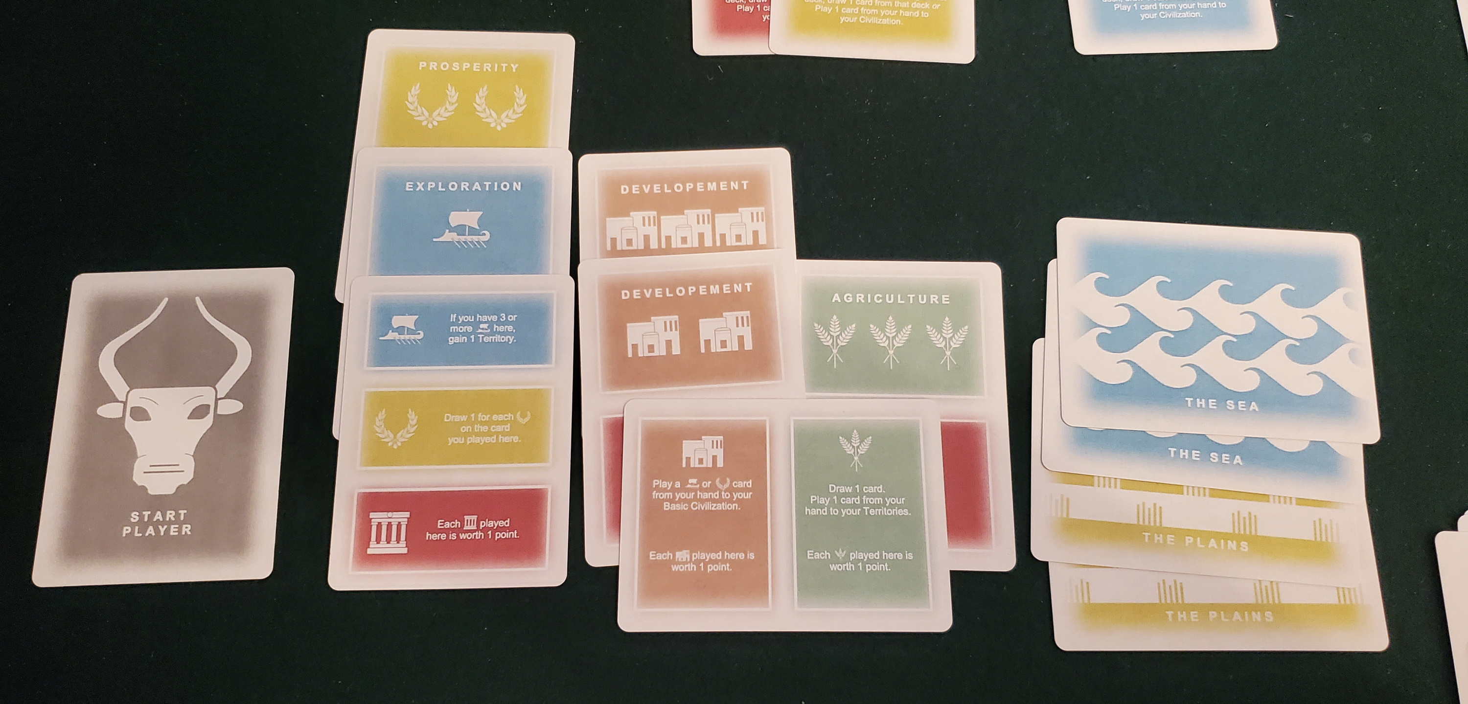 Again, the same is true of The Middle Ages. Its vision hews closest to the “Dark Ages” of Renaissance propaganda. You can hardly touch a card without considering whether it will transmit the Black Death through your fingertips. But the Europe of 1000-1500 CE was fairly peaceful. It’s true that there were big wars, and plagues and uprisings and pirates and everything else. For the most part, though, such events were sporadic and regional, not nearly as borderline extinctive as reports might make one assume. The Middle Ages is less about the Middle Ages, then, than it is about 14th-century France — a terrible title for a card game. Meanwhile, Clowdus also portrays the period as one of enthusiastic construction. The lion’s share of your points are likely found in hoarded treasures and crafted goods, but they’re also found in universities and cathedrals. This, too, reveals a certain understanding of the period, one where massive building projects rubbed shoulders with the Hundred Years’ War. Creation and destruction. Awkward housemates, those two.