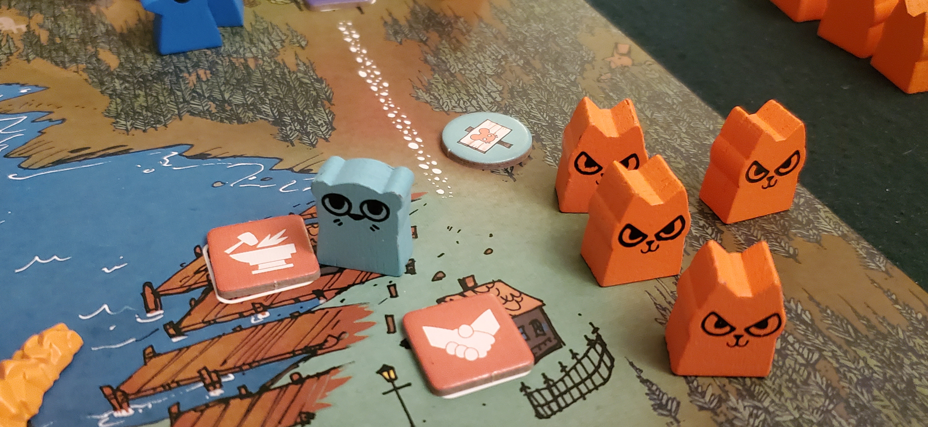 It likely hasn’t escaped anybody’s notice that the Riverfolk Company shares some deep parallels with the East India Trade Company, itself the topic of multiple of Wehrle’s games, most notably the brutal John Company. In most cases, the furry Company winds up behaving much like the historical Company. Initially, they ingratiate themselves with low prices and the occasional mercenary army supplied to a local underdog. Before you know it, they have trade posts up and down the entire map, they control most of the table’s wealth, and there’s not much anyone can do but watch as the entire woodland falls under their sway.
