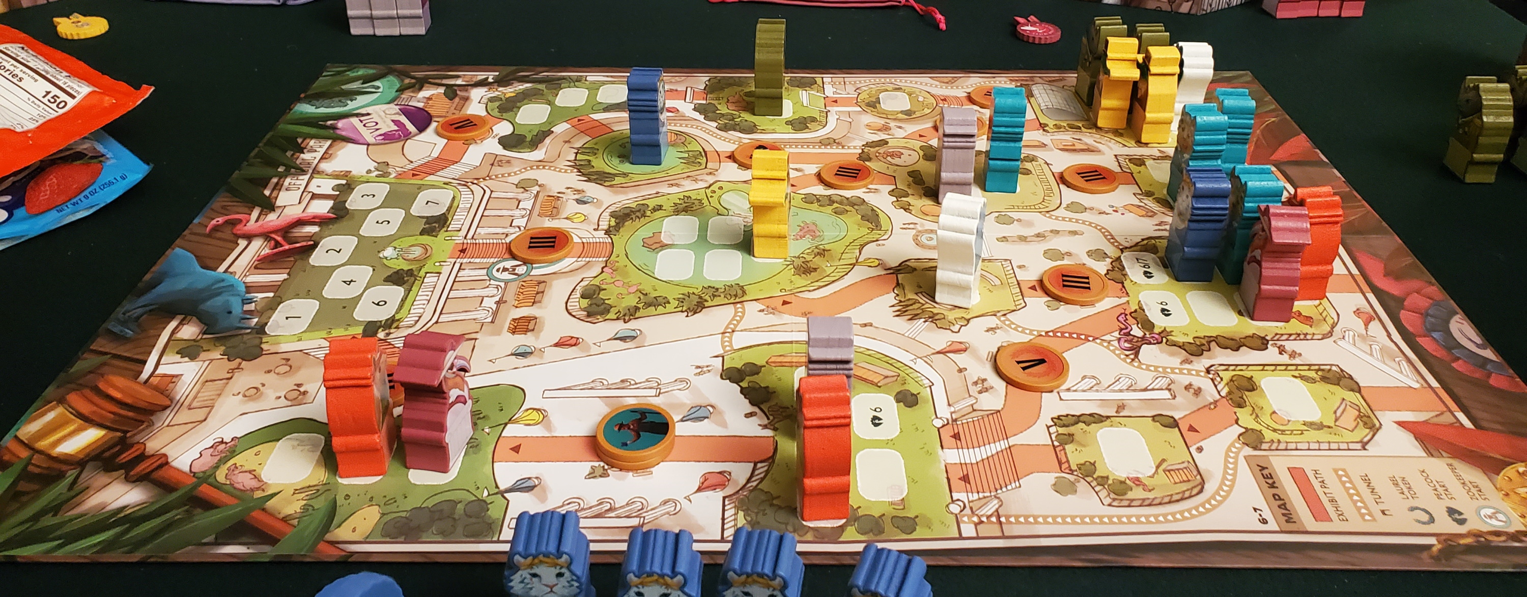 There are a few other twists, but just enough to toss some uncertainty into the mix without ever shifting the spotlight from the game’s relentless negotiations. I already mentioned the zookeeper. Moving him from one path to another earns you a point. If you have nothing better to do, why not play the provocateur by nudging him into a spot that gives you an advantage? Then sit back and watch the rest of the table fret over how to prevent you from moving without having to pay somebody. There are also peacocks, neutral pieces that can be bribed for their votes — or moved into exhibits, where they’ll take up space. It’s even possible to have a peacock hog room in the star exhibit, preventing somebody from scoring at all. Of the many worthwhile plays I’ve witnessed in Zoo Vadis, none beats locking Geoff out of the star exhibit when he was clearly holding the most points. Mwah.