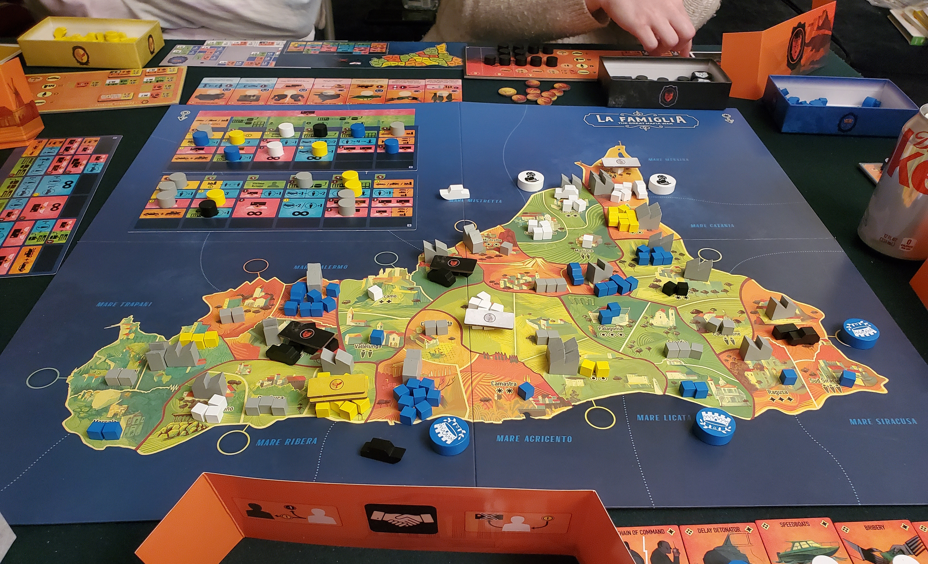 La Famiglia: The Great Mafia War, the latest design by Maximilian Maria Thiel, has caused a minor stir thanks to its subject matter, the Sicilian mafia wars of the 1980s. Sometimes called the Mattanza — the slaughter — this conflict claimed thousands of victims, including bystanders, police officers, and civil servants, and included acts of violence that crossed borders and oceans.
