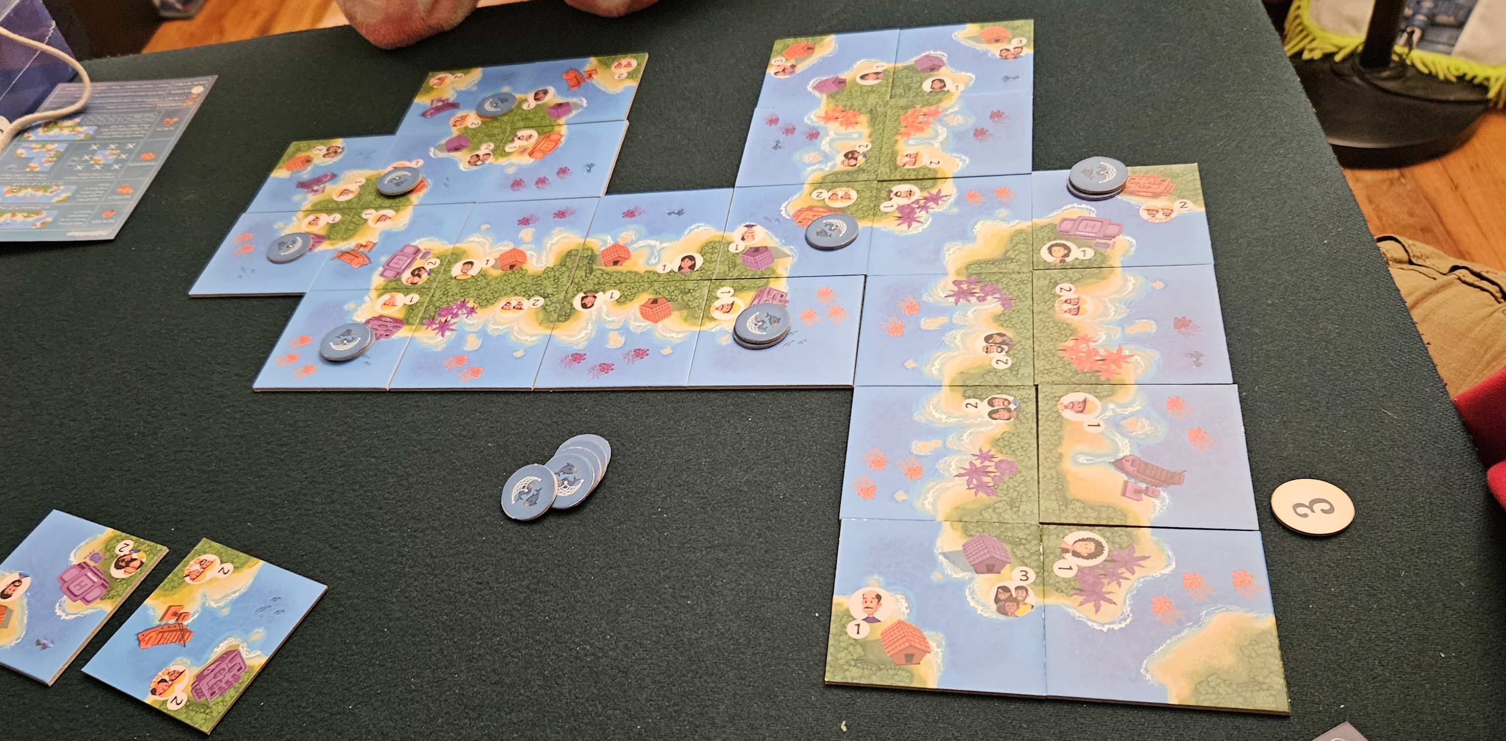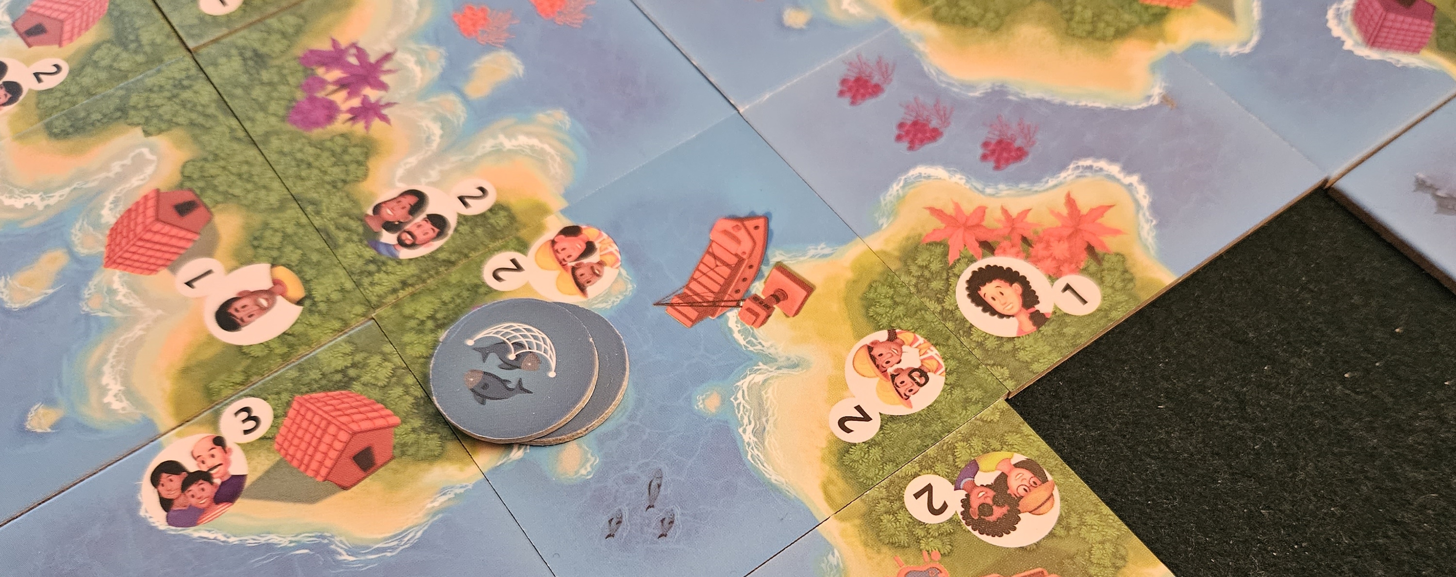 I expect the latter is the case. For all its posturing, Lakshadweep is such a very traditional game. Far from being a ding against the game, however, this works in its favor. Lakshadweep has no barrier to entry to speak of, instead letting players get right down to the business of drafting and laying tiles, assessing victory margins, and enjoying the sights that result from their efforts.