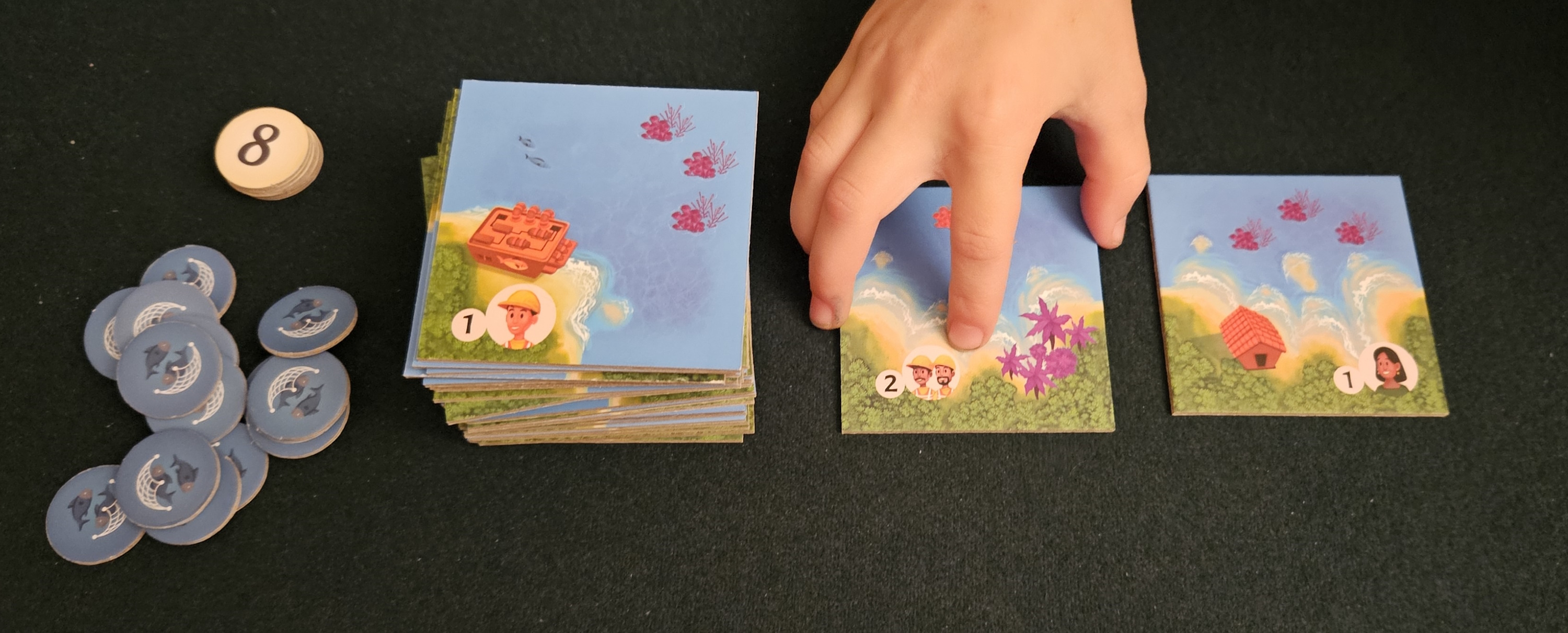 But the ultimate value of forests only appears in the advanced game, where they’re one of two ways to earn bonus tokens. These emphasize the game’s focus on mitigating climate change. Now you can construct green structures, prop up sustainable tourism and fishing, and enact conservation measures for forests and reefs.