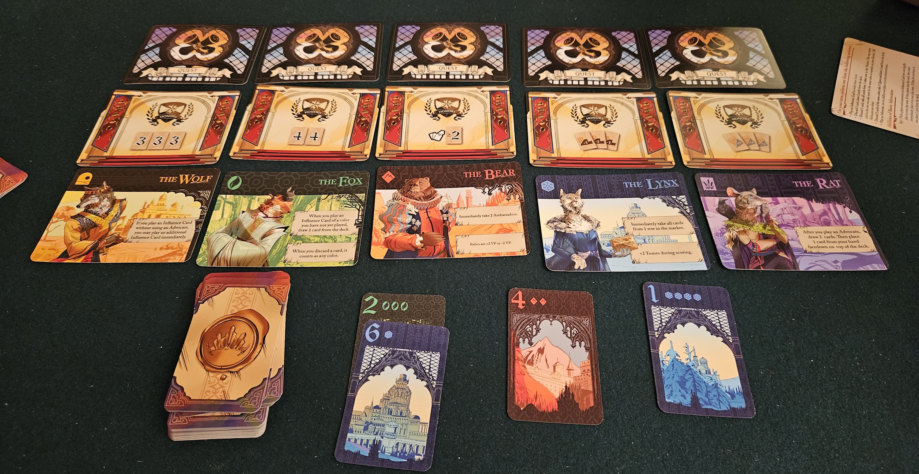 It’s a lot to keep straight, is what I’m saying, and that’s before we consider the game’s rapid and chaotic course of play. Spies are useful for stealing cards, but that presupposes you can recall who grabbed which card from the market — and precludes the possibility when they drew the card straight from the deck. For a game that puts so many moving parts into action, some extra options for scoping out information wouldn’t have gone amiss.