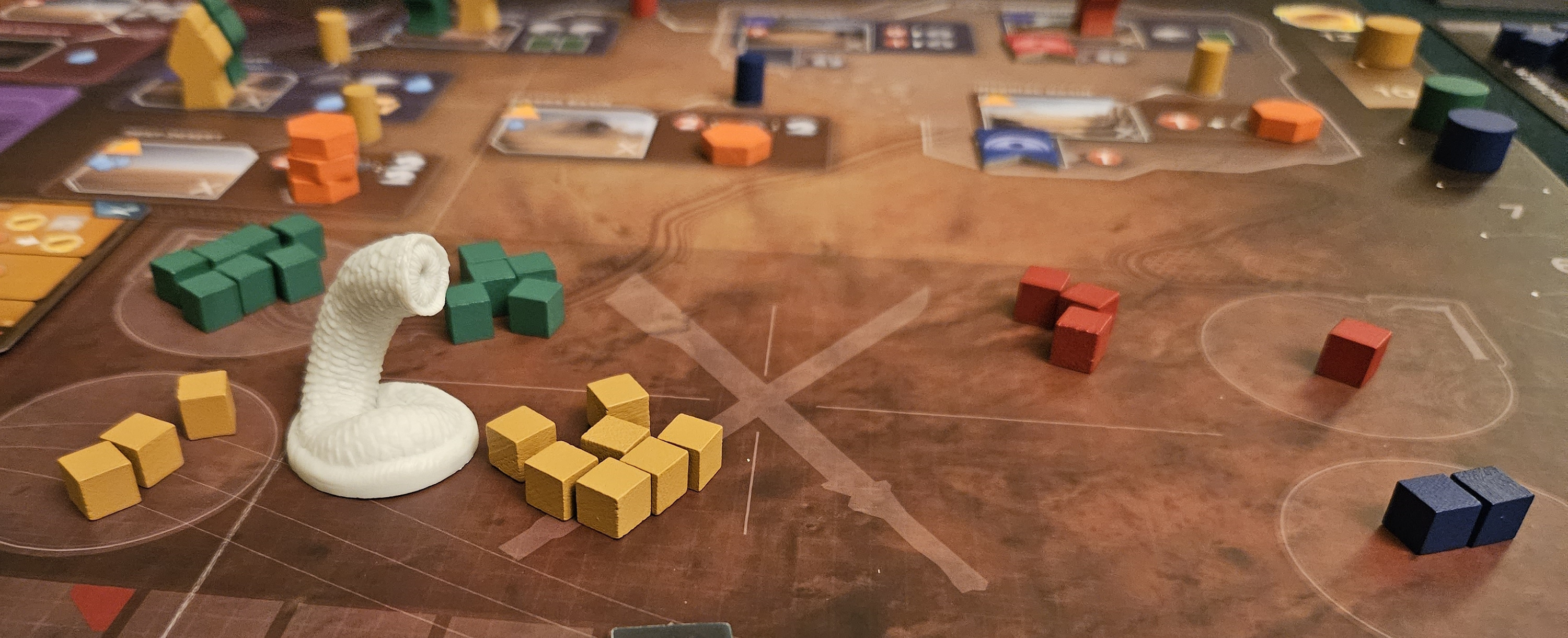 was scratching my head at first when they announced a stand-alone expansion that was backwards-compatible with all other previous content (only to learn that this was true with multiple caveats), and amused by the BGG post about how the new deluxe plastic worms look like male genitalia from a certain angle. Imperium and Uprising seem to reflect the atmosphere and tone of Dune Part 1 and 2 respectively, and so I don’t lend much credence to the accusations of a “cash grab” posted on various forums.