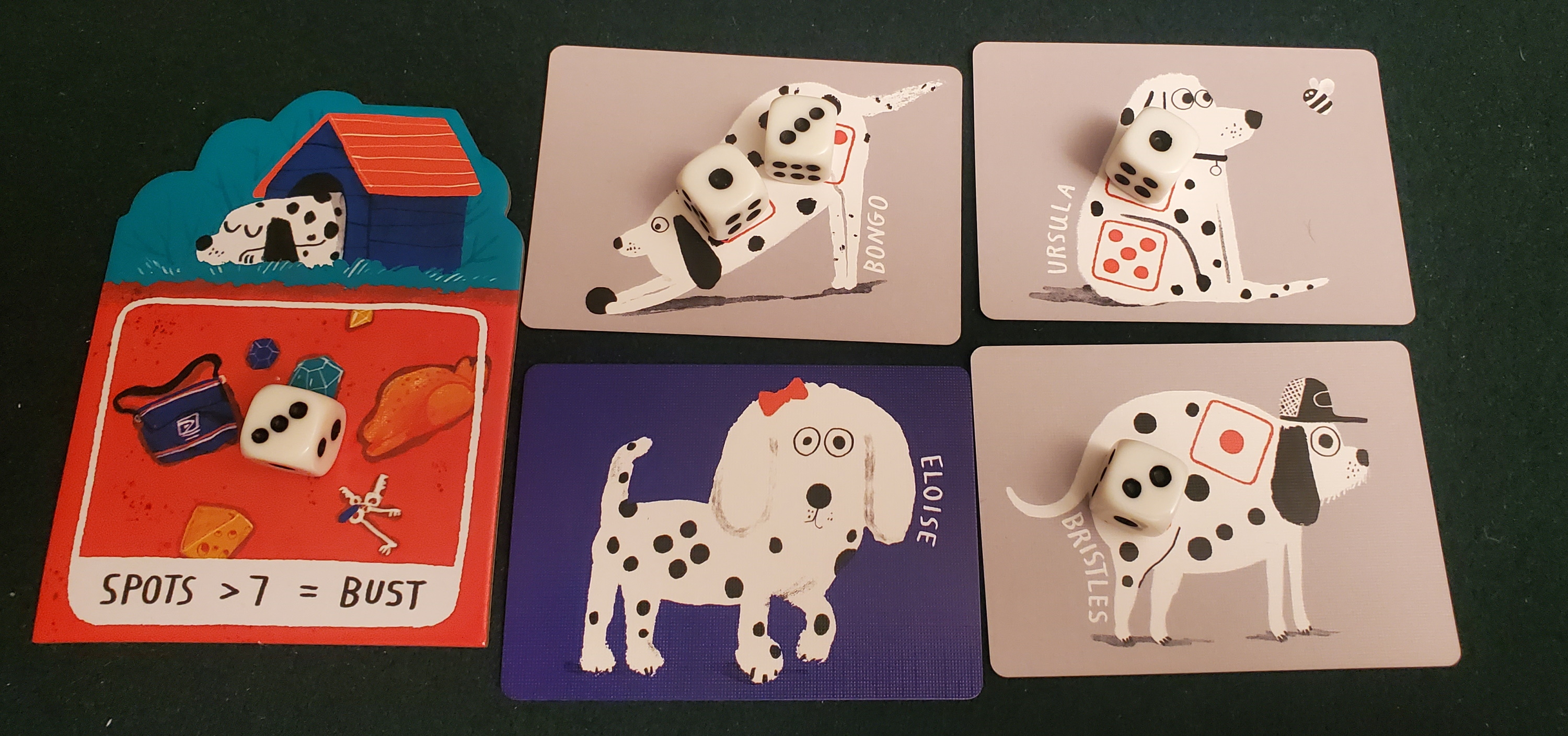 The simplicity of Spots belies the merciless probabilities running under the hood. I could write an essay about the game’s diegetic use of dice, but that would detract from the uncomplicated delight of rolling the things. Add the teensiest dash of resource management and action selection, and you have one of the most charming and approachable press-your-luck games ever designed.