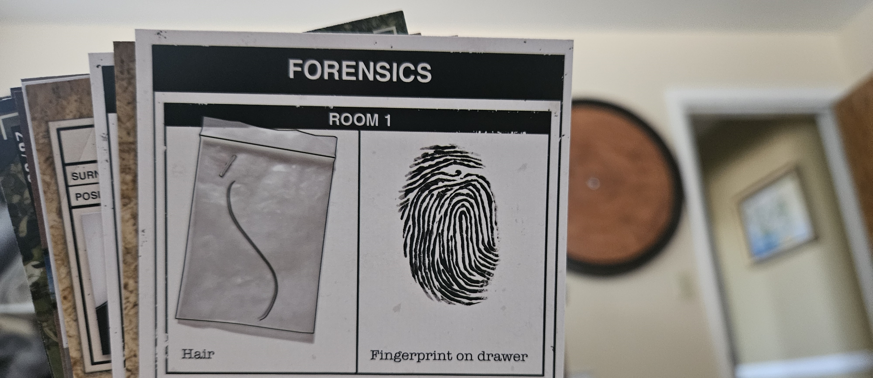A case goes like this. After reading a brief introduction, everybody is dealt a hand of cards. This is your body of evidence. Again, you’re only privy to a small selection. Depending on the player count, you might have anywhere from a whopping six to a meager two cards to peruse. You start talking.