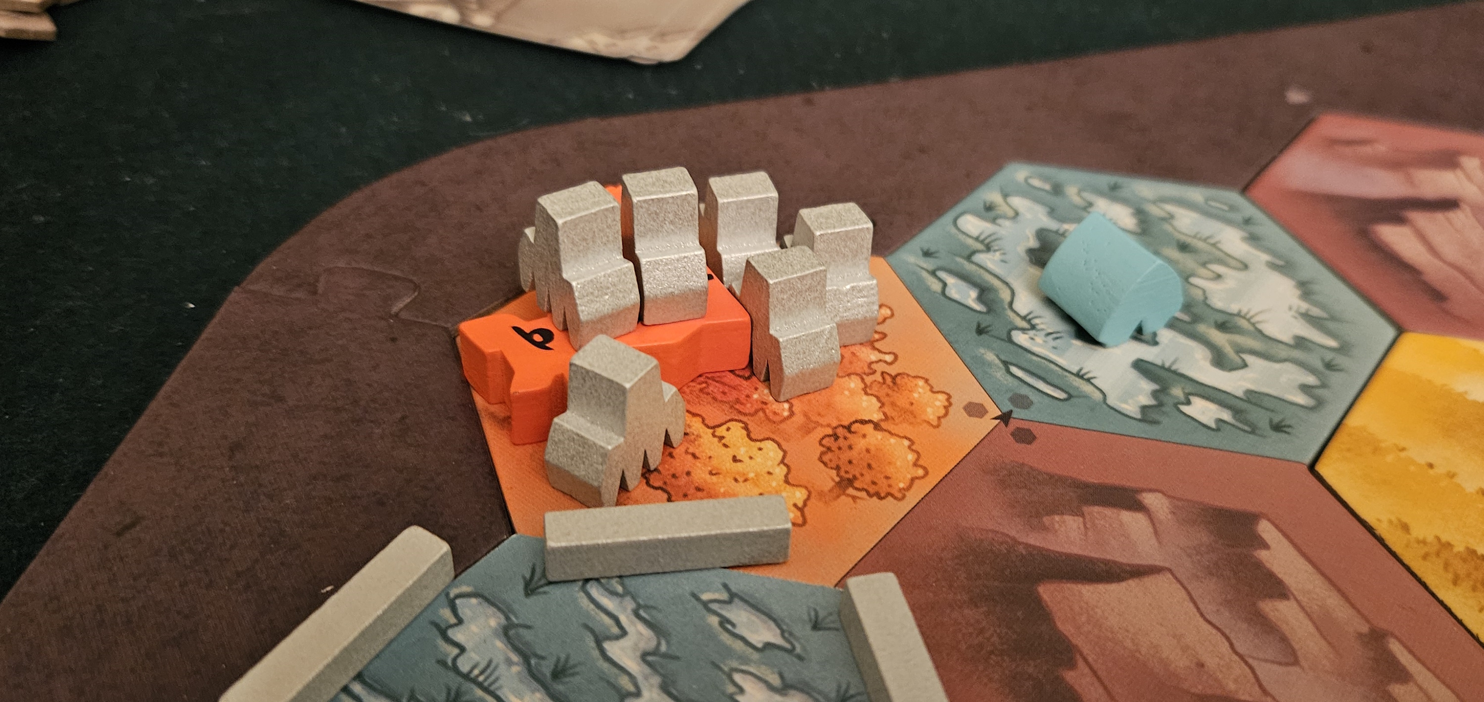 Squint and the machine looks uncomfortably like the activities we’ve undertaken in a hundred board games. Those walls are Catan’s roads. Those mechs are the armies we sent to suppress dissenters and barbarians. Those factories are the cities and mines and sawmills we inflicted on empty tracts of wilderness. Listen to me. “Empty.” They were never empty. There was never such a thing as terra incognita. Only the places and people we decided didn’t count as important enough to deserve protection.