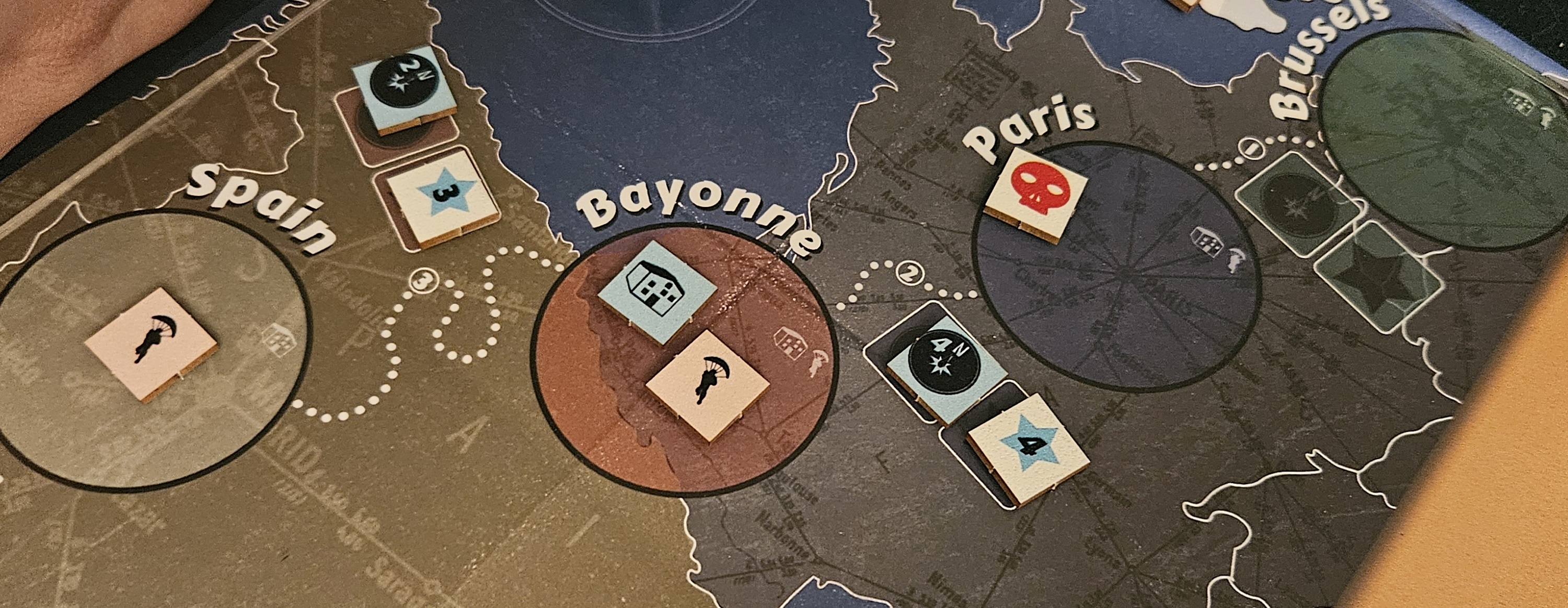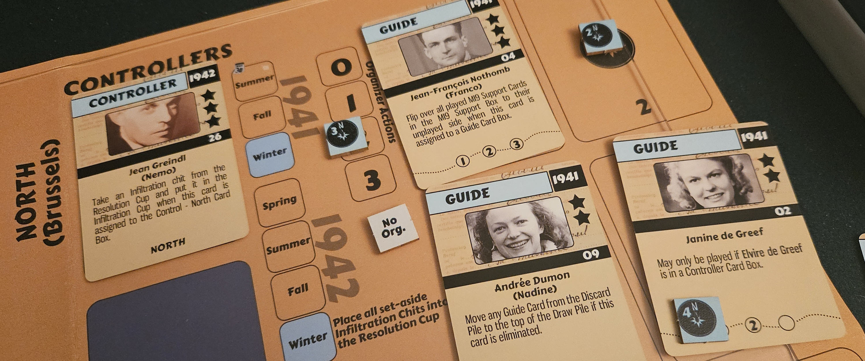 It’s also a game that can entrap players thanks to minor mishaps. Like many historical games, Comet puts its narrative first and everything else second. This isn’t often a problem, but it’s loaded with phases that must be executed in precise sequence and a good two or three mechanisms that are very nearly ancillary to your broader endeavors. Controllers work alongside guides to manage the Comet Line, but they aren’t given much to do. There’s a pool of resources that exists solely to buy downed airmen into better starting slots. Gestapo tiles eventually appear in cities to unravel your network, but their presence is defanged when they prove so easily mathed out.