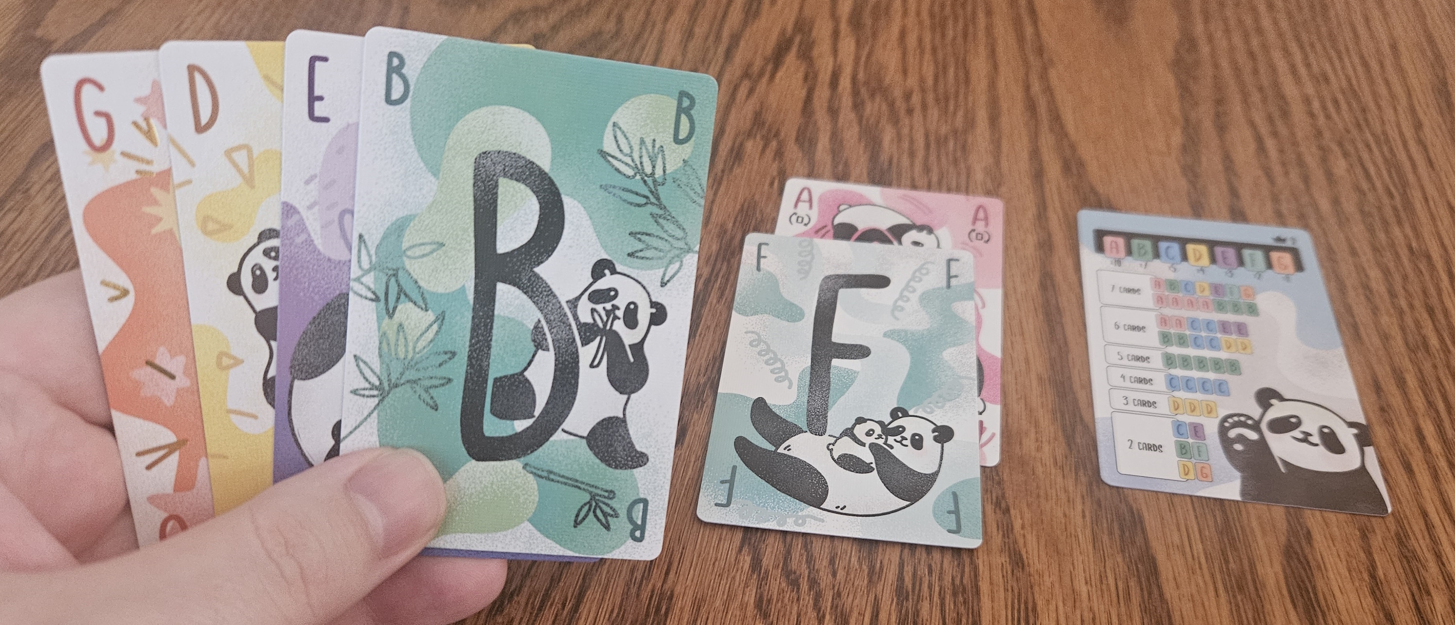 Worse, you can only win at the start of your turn, so it isn’t possible to grab the spare card you need and win immediately. Worse worse, pandas are known for rolling all over the dang place. Whenever somebody discards an A, everybody at the table is forced to pass a single card to their left. These panda rolls are a great way to shake up your hand, but they also bust any chance of keeping your hand intact for more than a few minutes.