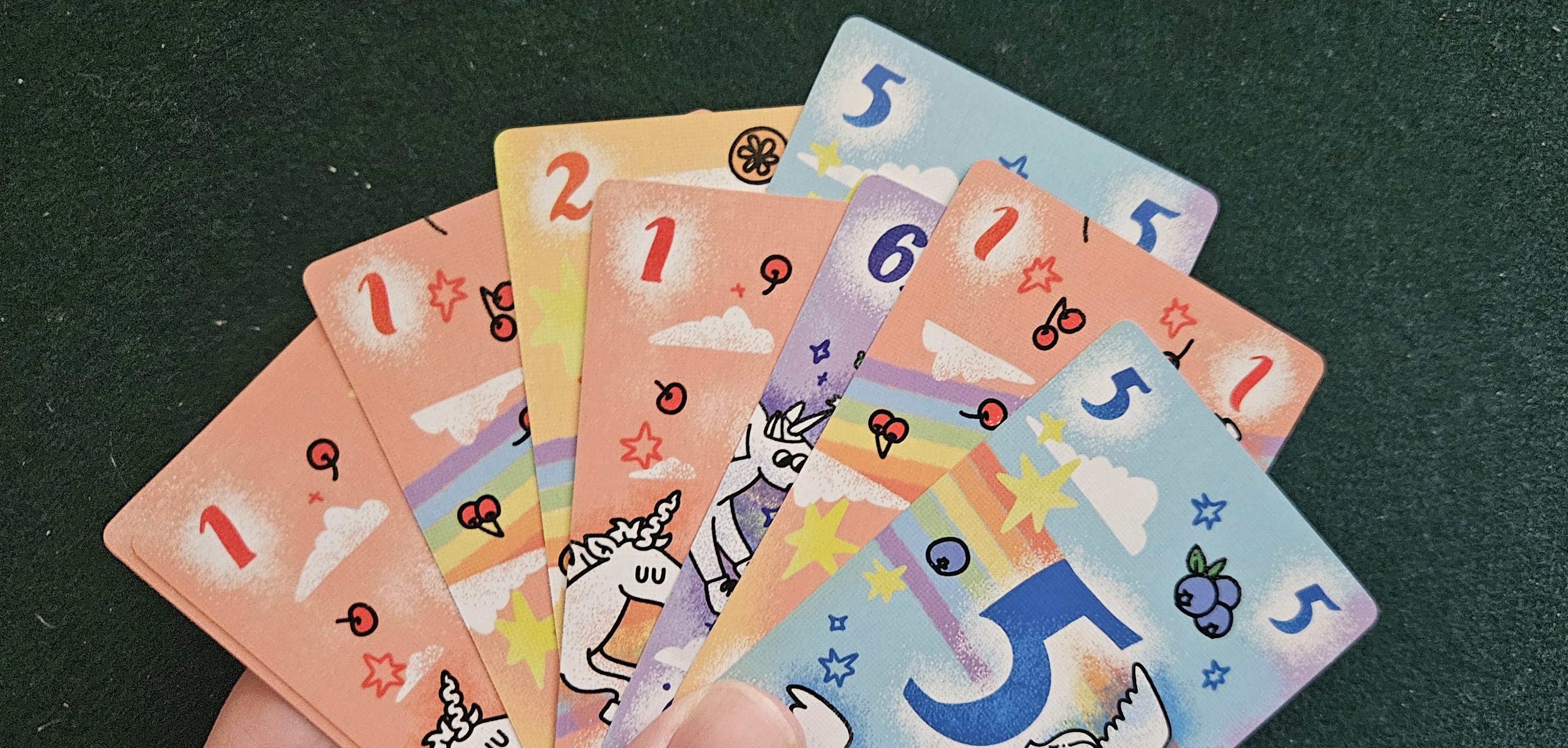 Yes, this is another trick-taking game with a wrinkle. What sets Rainbow apart is that it’s perhaps the briskest trick-taker I’ve ever played. Played over the course of only a single hand and occupying approximately half the duration of Prey, words like “fast” cease to hold any meaning. This game isn’t fast. It’s a blink. It’s a flutter of a hummingbird’s eyelash.