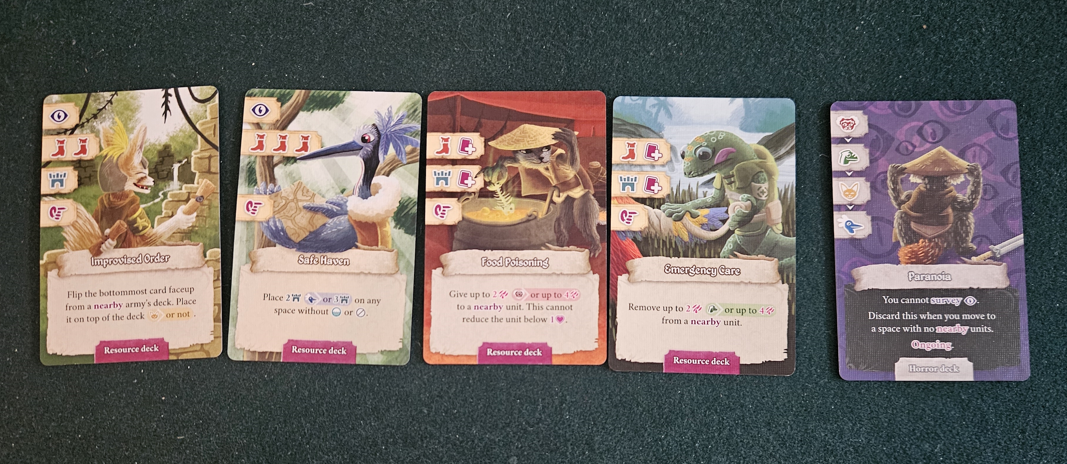 1. Thank you for this review! I’ve been curious about the games in this setting, especially this one, but honestly something about the art is so off-putting that I have never touched it. Somehow where Root’s art and anime-style anthropomorphic animals are both comforting to me, something about this lives in maybe not the uncanny valley proper, but the valley next door. I get a similar feeling from Too Many Bones, a game I would probably love if I could look at it for more than 5 seconds at a time.