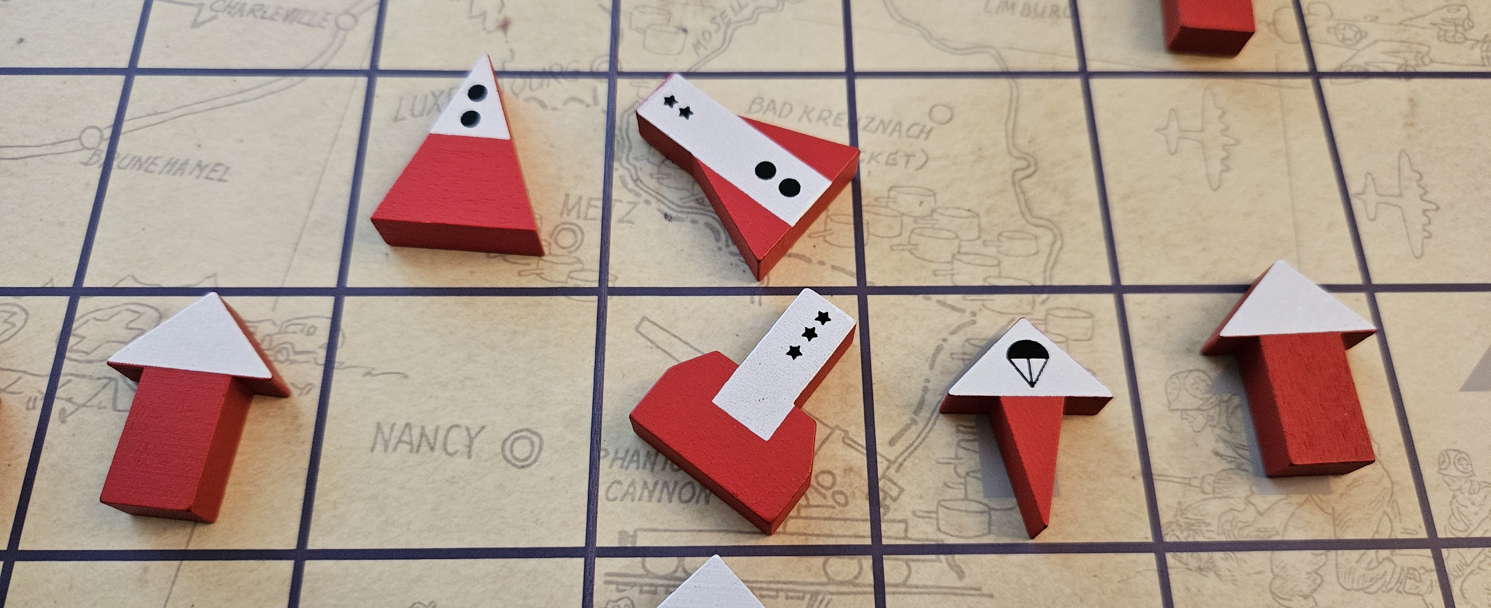 It’s also so very Vonnegut. Years before Billy Pilgrim manifested as his coping mechanism for the horrors he witnessed in the Ardennes and during the firebombing of Dresden, here he was designing a game that drew on his experience as a spotter for the 106th Infantry Division. It’s a game rooted in a particular military doctrine, one where most casualties were not inflicted by tanks or planes, but by distant cannons. While the game’s airborne units are flashy and threatening, it’s the roving fields of fire that shape this battlefield.