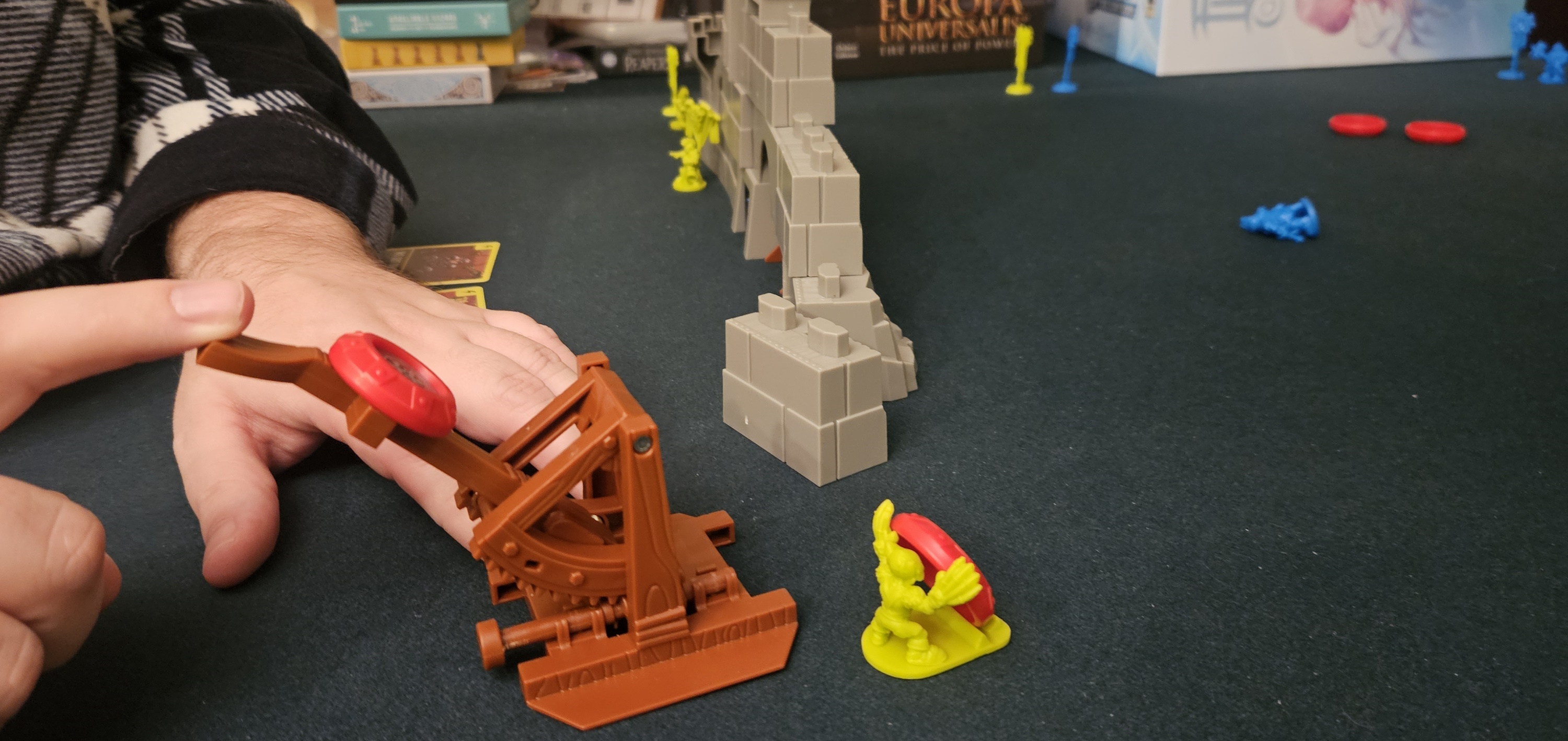 In those moments, I could not care one whit that Crossbows & Catapults lacks strategic depth. This is a game for goofballs and children. Thankfully, I have two of the latter to keep my inner goofball alive a little longer. When we wrapped our most recent session, my ten-year-old asked if I was going to give this one away to somebody else.
