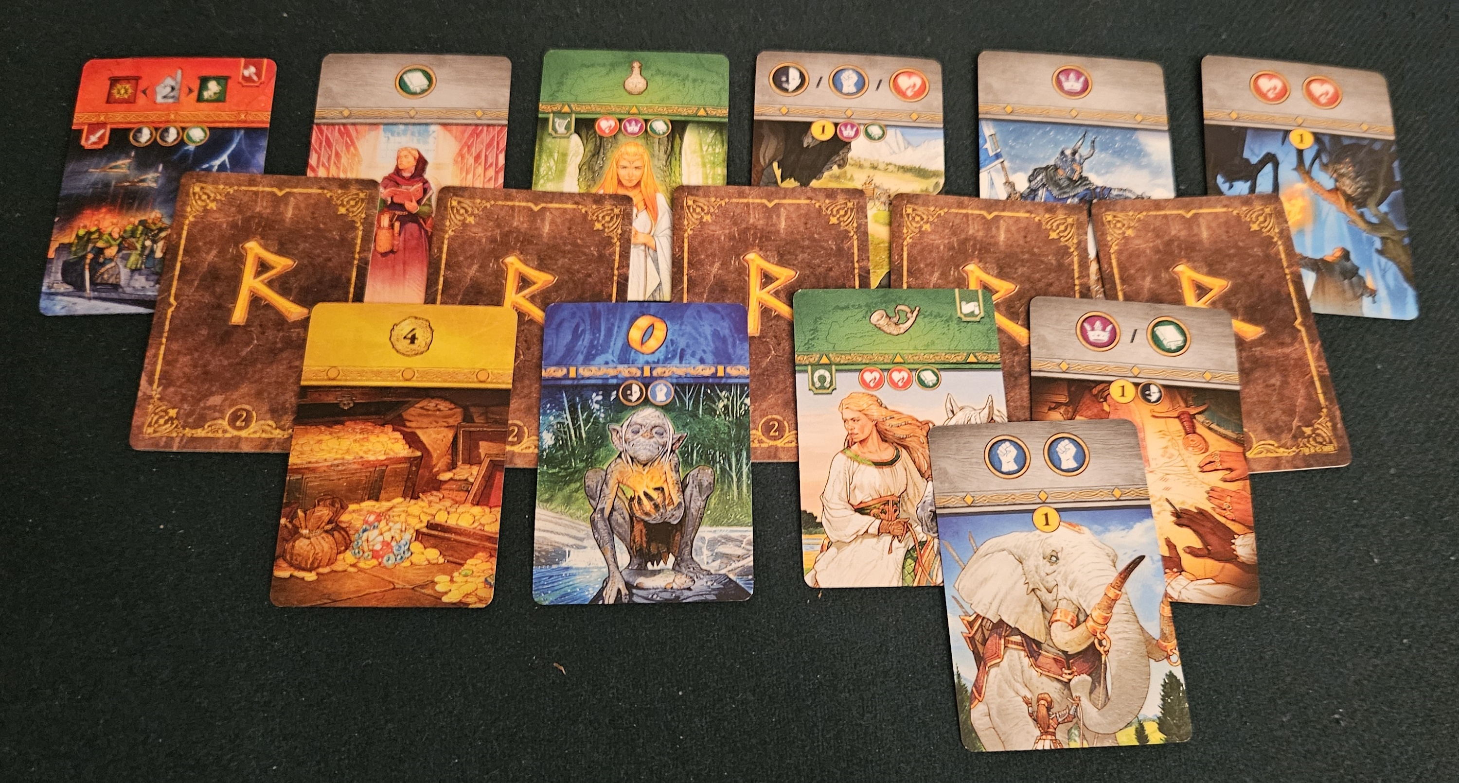 The same goes for alliance cards, which pull the humans, dwarves, elves, and so forth into your sphere of influence. One of the game’s victory conditions requires six different alliances, encouraging diversification (aha!), but duplicates are also valuable, as nabbing double influence in any given race allows to you select one of their special tiles for an ongoing bonus. These can swing the conflict on a dime. Ever wanted to earn an extra turn whenever you pick up one of those downer gold cards? The Elves are your jam. Want to turn the Quest for the Ring into a chance to beef up your forces? For some reason, the Hobbits will do that.