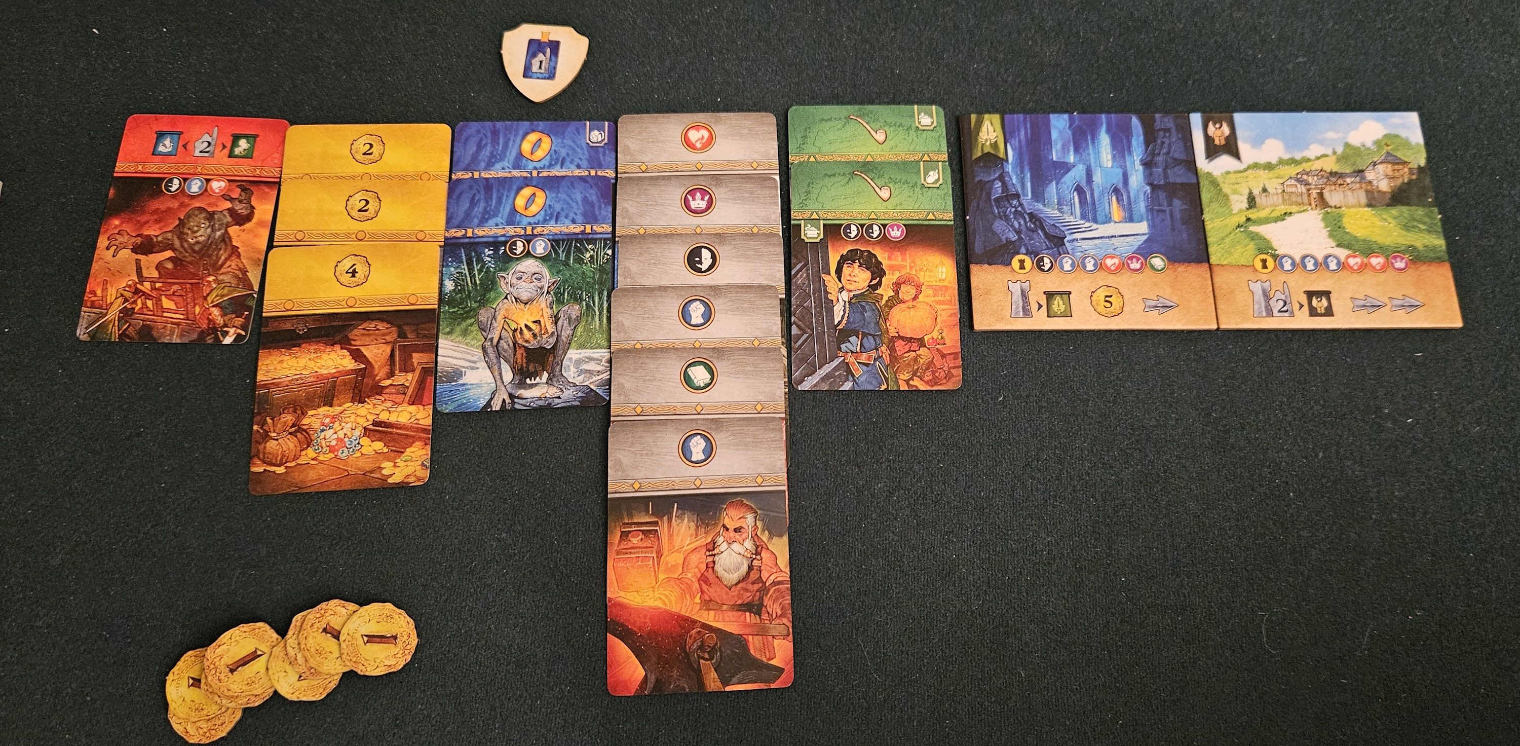 1. Yep. Not near as good at the original, 7 Wonders Duel. I love Tolkien/ME but this is “anodyne” for me in the bad sense. B-O-R-I-N-G. I’m already trying to hock my copy for anybody who will pay me for it.