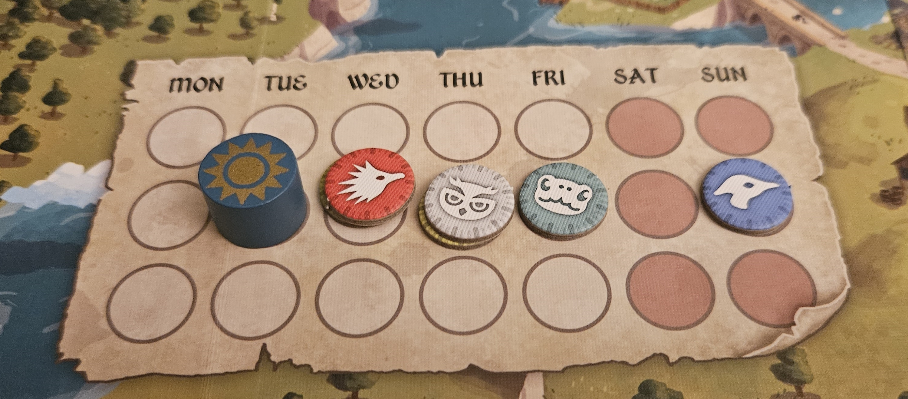 Things change. Seasons come and go, including the rather nice touch that the board flips to reveal a snow-shrouded Galzyr on its winter side. Your character’s skills might change, but that means change, not develop. You will always have four skill pips, never more and never fewer. Items can be swapped out, but, again, you always carry three at most. Your adventurer might gain a retinue, little side characters who travel with you for a week or so. But they’ll soon go their own way, leaving you alone once more.