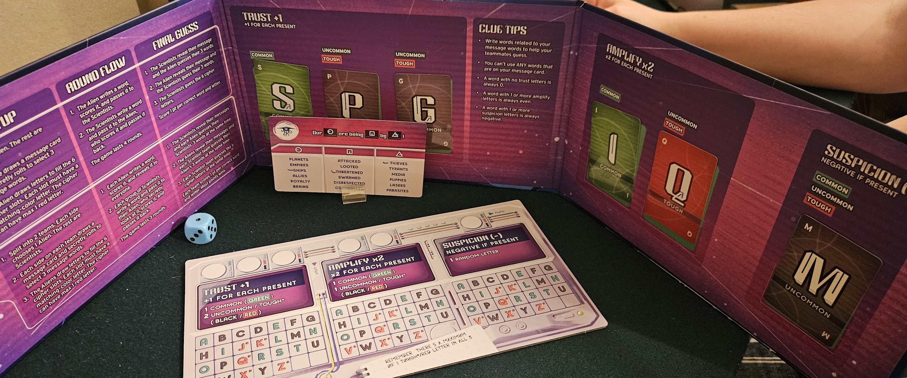 I saw this game and it spoke to me: language! (I hold a BA in Linguistics). Sci-fi! (big sci-fi geek here). First contact! (huge Star Trek fan).