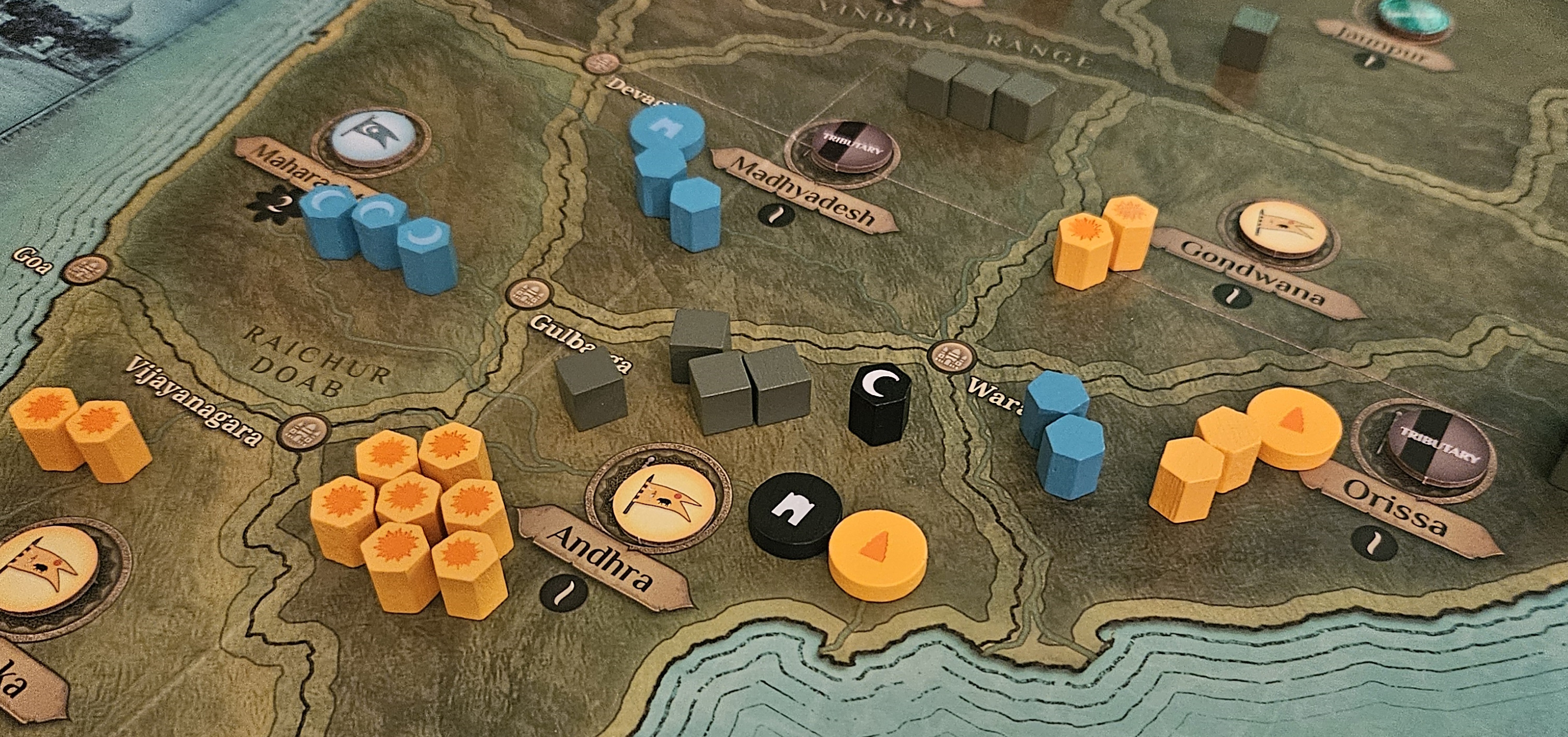 What’s the best course of action when the Mongols invade? Let’s get down to business, to defeat… the dominant empire! Vijayanagara inverts the fantasy trope of everybody coming together to tackle some existential threat, instead putting history’s messier corners on full display. While the Delhi Sultanate is occupied with the Mongol hordes, two southern kingdoms take advantage of the crisis to declare their independence. To win, it will be necessary to make peace with your neighbors, or at least batter them into submission, but political agreements tend to be short-lived when everybody stands a chance of founding the next big dynasty.