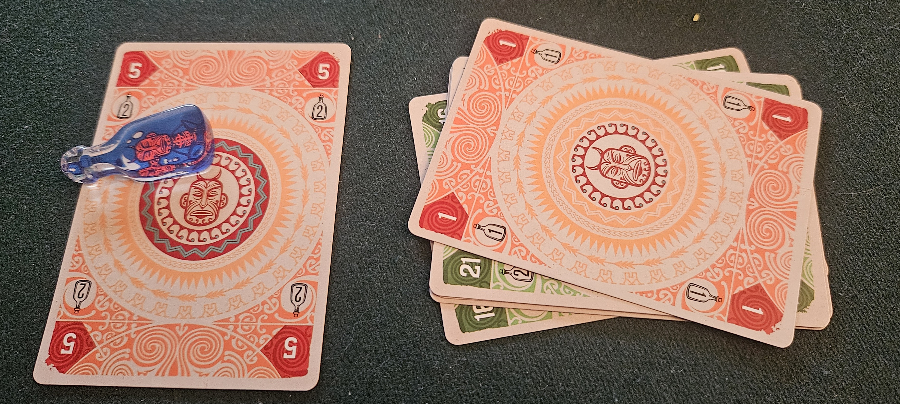 But this is where the curse kicks in. The card you used to win the bottle imp becomes its new price. Unless you want to lose the hand outright — and worse, subtract a bunch of points from your overall score — you will need to move the bottle along to somebody else.
