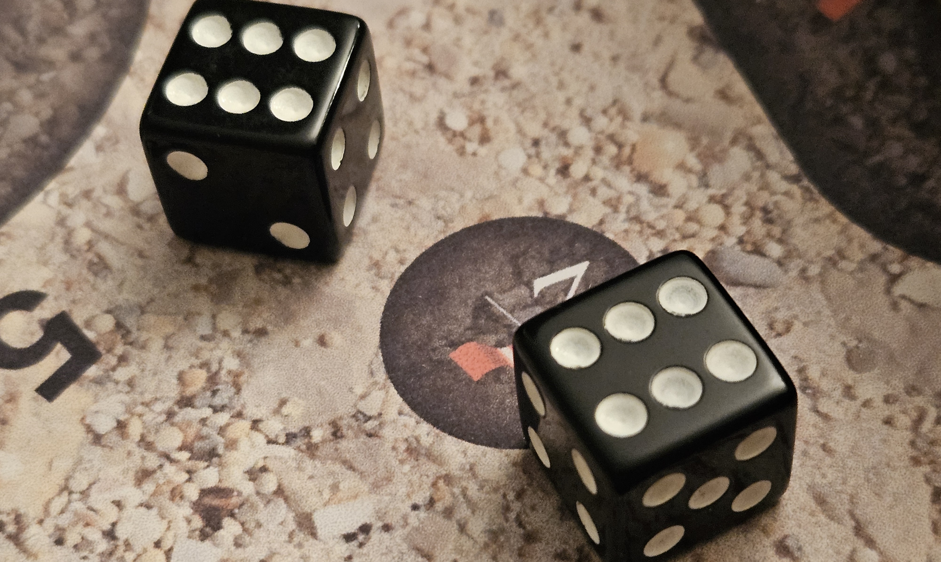 Along the way, Lawrence adds something essential. With each throw, both players snap a picture on their phones. The rules for these pictures are as straightforward as the production, but set in stone: each image can only show two dice, presenting a limited snapshot of the wider war, and is prohibited from showing the contents of either side’s combat cards.