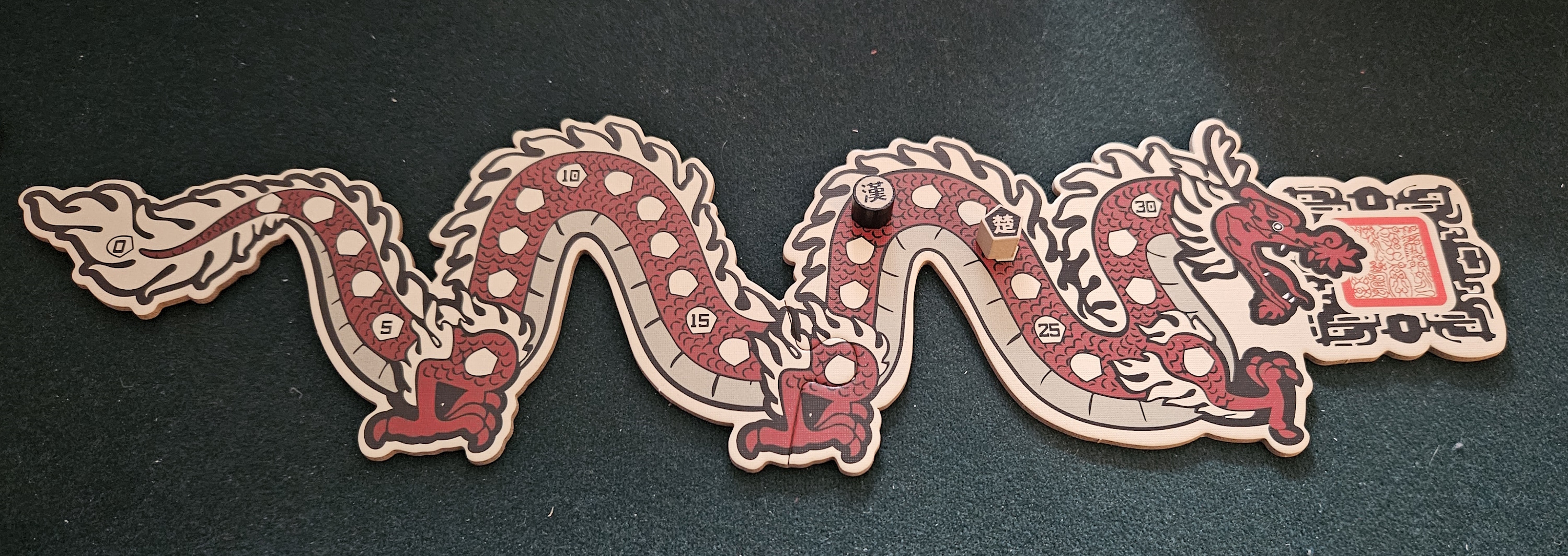 At first blush, it’s surprising how closely Lehmann sticks to the sheet music. Chu Han is a tight duel for two players, each of whom controls one of the ancient Chinese states. Both sides draw a chunky hand of cards. The objective is to get rid of them as quickly as possible, ideally while your opponent is still holding quite a few. Legal hands are downright simple: singles or matching ranks. There are no runs or sequences to consider, and, given the staggered nature of the card rankings, higher-valued sets are increasingly hard to assemble. Bit by bit, both sides creep toward the 31-point threshold necessary to claim dominance.