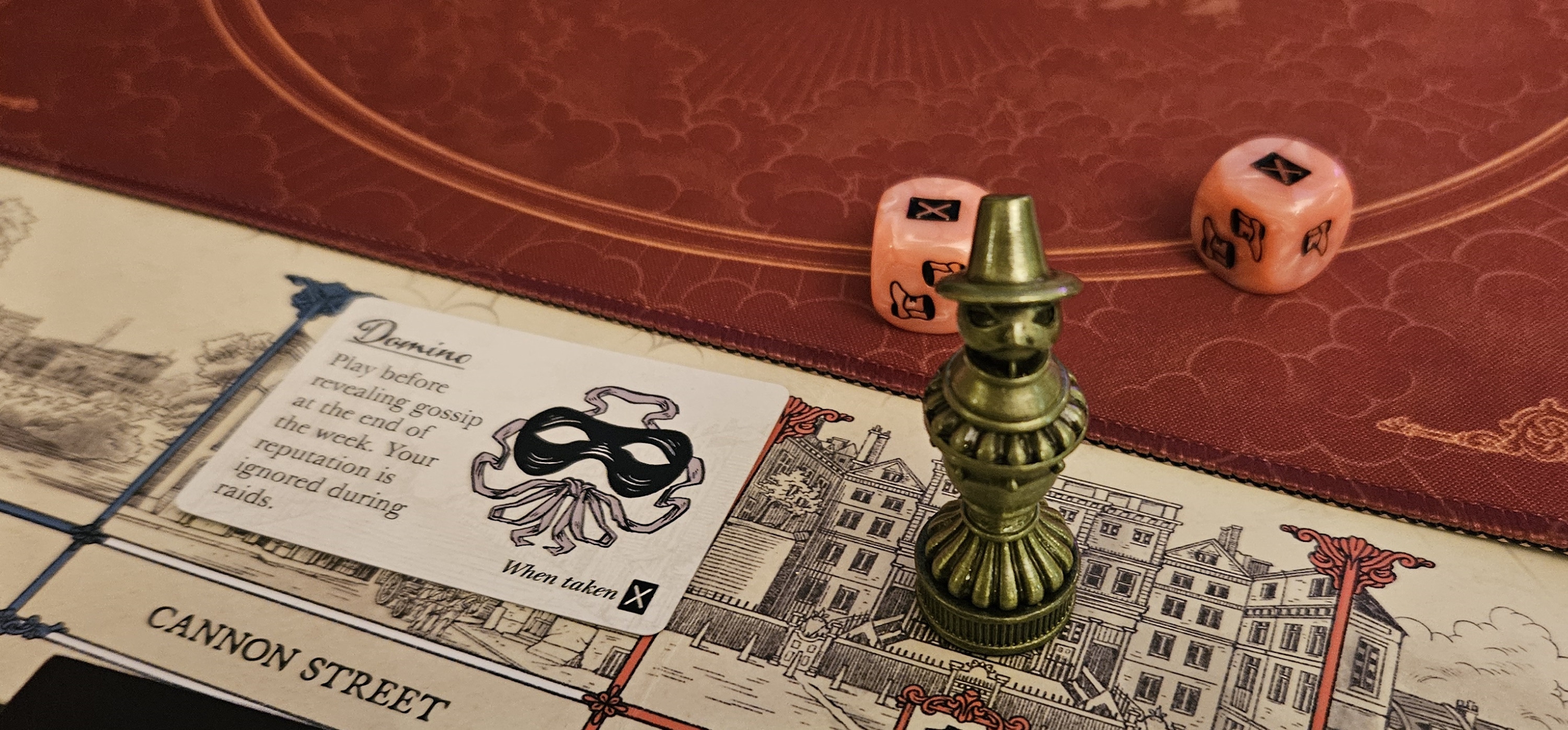 When I wrote about an earlier build of Molly House a year and a half ago, I was struck by the determination of that joy, its resoluteness. This is the first big publication from Kelly, but Wehrle is no newcomer to designs that emphasize imperial violence, whether the adventuring armies of Pax Pamir, the empire-toppling merchants of John Company, or the opium-slinging traders of An Infamous Traffic. The violence in Molly House is of a different stripe. It’s a Sword of Damocles rather than a cavalry saber. But it’s there all the same, suffusing the experience with anxiety.
