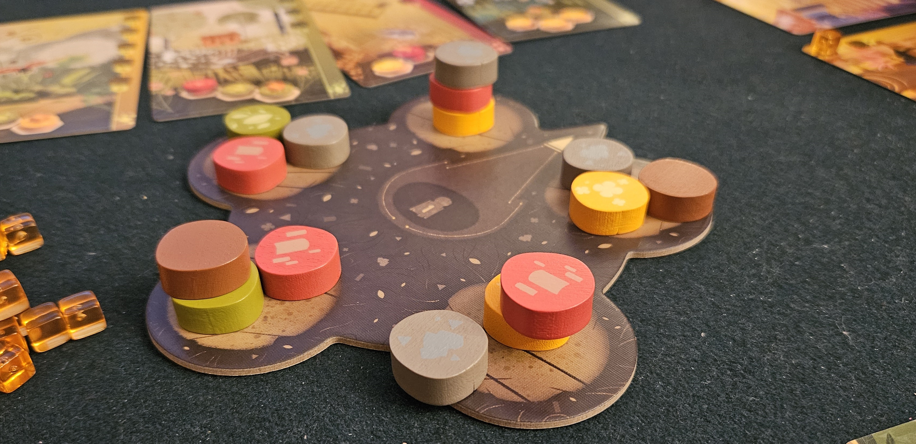 It’s wonderful to look at, the picking and placing of discs, cards and cubes is a joy to the fingertips, it doesn’t overstay its welcome… and yet it doesn’t raise anything in me. Might be the actual selection of discs, which is way too generous to have any bite, might be the scoring system, which almost devoid any choice of real implication. Might be me who actually needs a sharp edge somewhere in order to not feel as if I’m playing on my own.