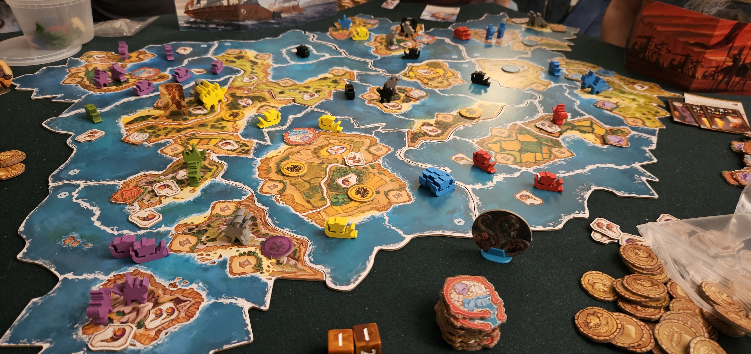Right, I think Poseidon gets a minor debuff here. Which isn’t all bad — previously the guy was a tyrant! And with those income-generating spaces there’s still reason to fight over the seas. It’s just not quite as critical as before.
