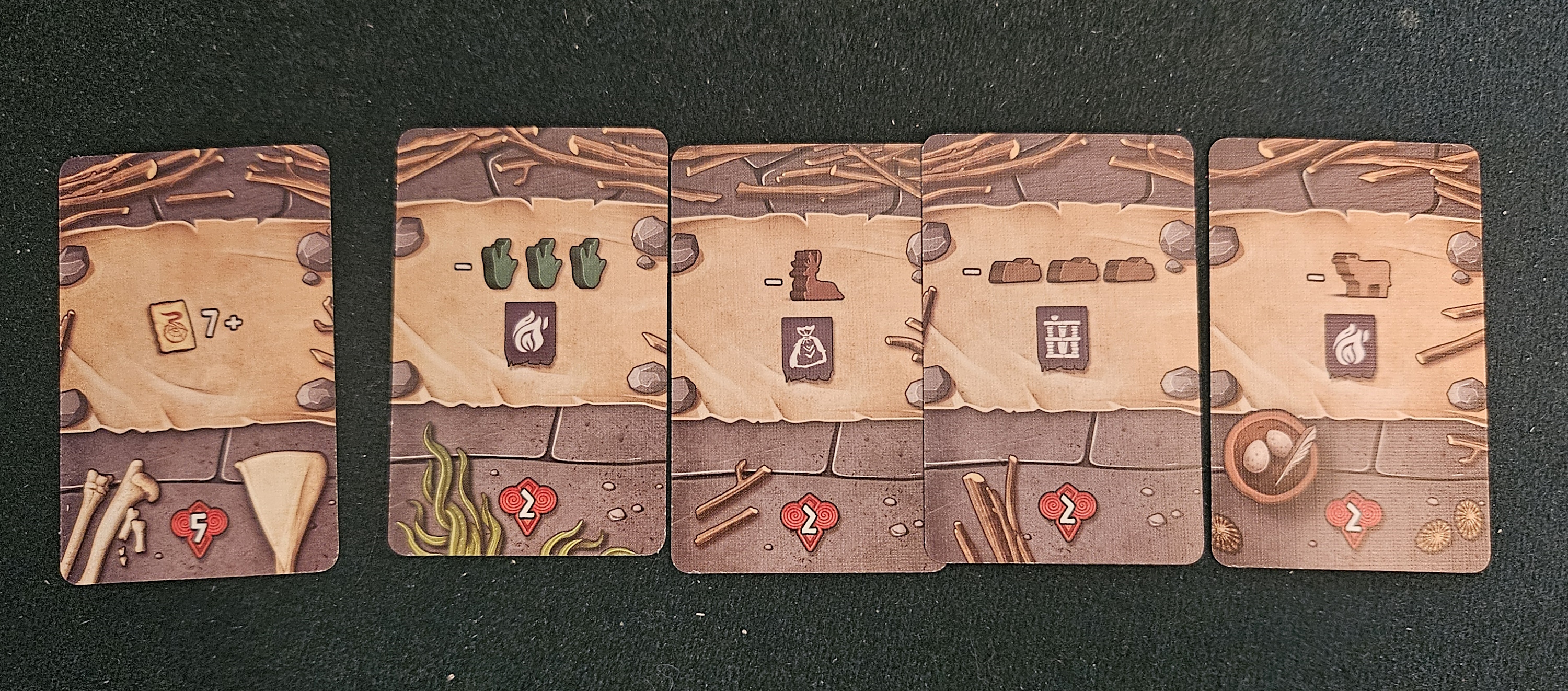 The same goes for the cards themselves. Villagers are the punchiest of the lot. The more you welcome into your home, the more resources they gather. Each also offers a one-time ability that nabs something more worthwhile, a rabbit or fish, perhaps even the option to swap some grain for a cow that could feed your entire settlement for a year. The tradeoffs, however, speak to a tyranny of the calorie that would never be far from such a community’s thoughts. Villagers need to be sheltered and fed, increasing the burden on your camp. This makes the other options worthwhile in their own right. Utensils increase how much you can cook at a time, while roofs make it easier to shelter your growing tribe. Carved stone balls might not seem like a big deal by contrast, but hey, culture is culture. Who doesn’t love bocce?
