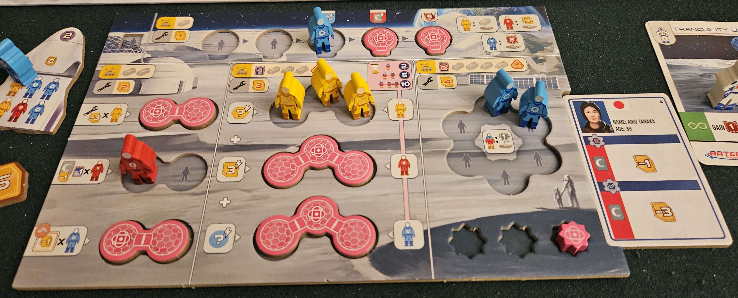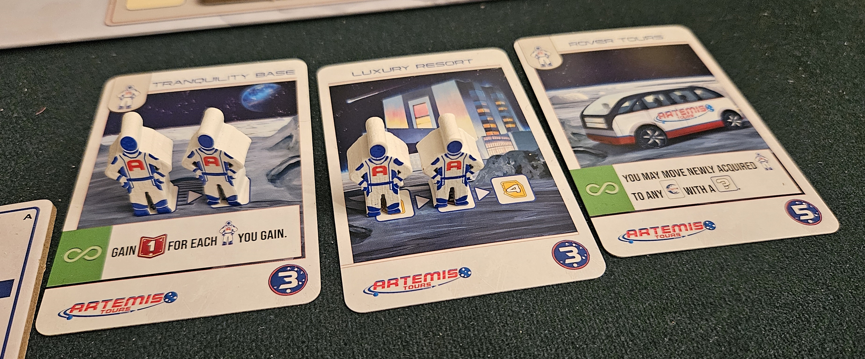 In some cases, your corporate interests might clash — or even conflict outright. In one recent session, we were presented with three sponsors. Early on, the creatively named Moon Mining was the preferred front-runner, letting us ship helium-3 and rare earth elements back home for heaps of points. Meanwhile, Artemis Tours saw everybody building up their infrastructure to squeeze lunar tourists of their hard-earned credits.