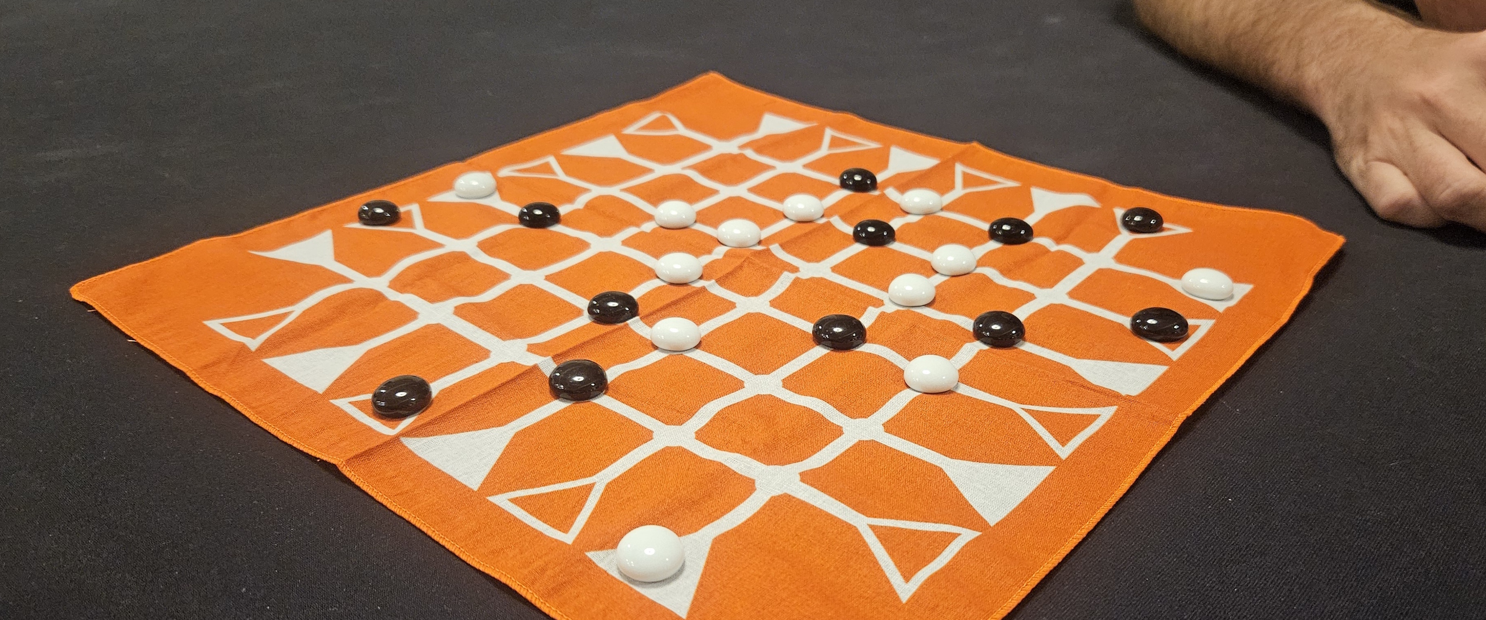 Welcome to the open ocean. It’s orange. One might even call it wine-deep. As noted, your goal is to put five stones in a row.