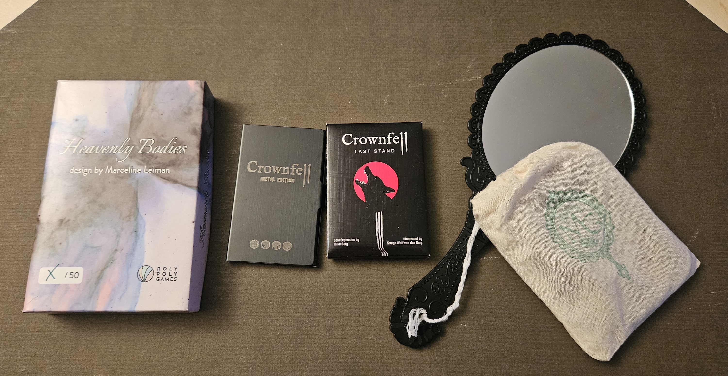 Complimentary copies of Heavenly Bodies, Medusa’s Garden, and Crownfell were provided by their respective designers.