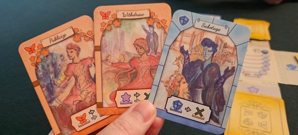 There are other wrinkles, but that’s enough to set the stage. Often, all it takes to flip the switch between magnanimous and petty is the reveal of a single card. It feels like a parable in game form, drawing out social behaviors through simple rules and clear incentives. I can safely say I haven’t played anything quite like it.