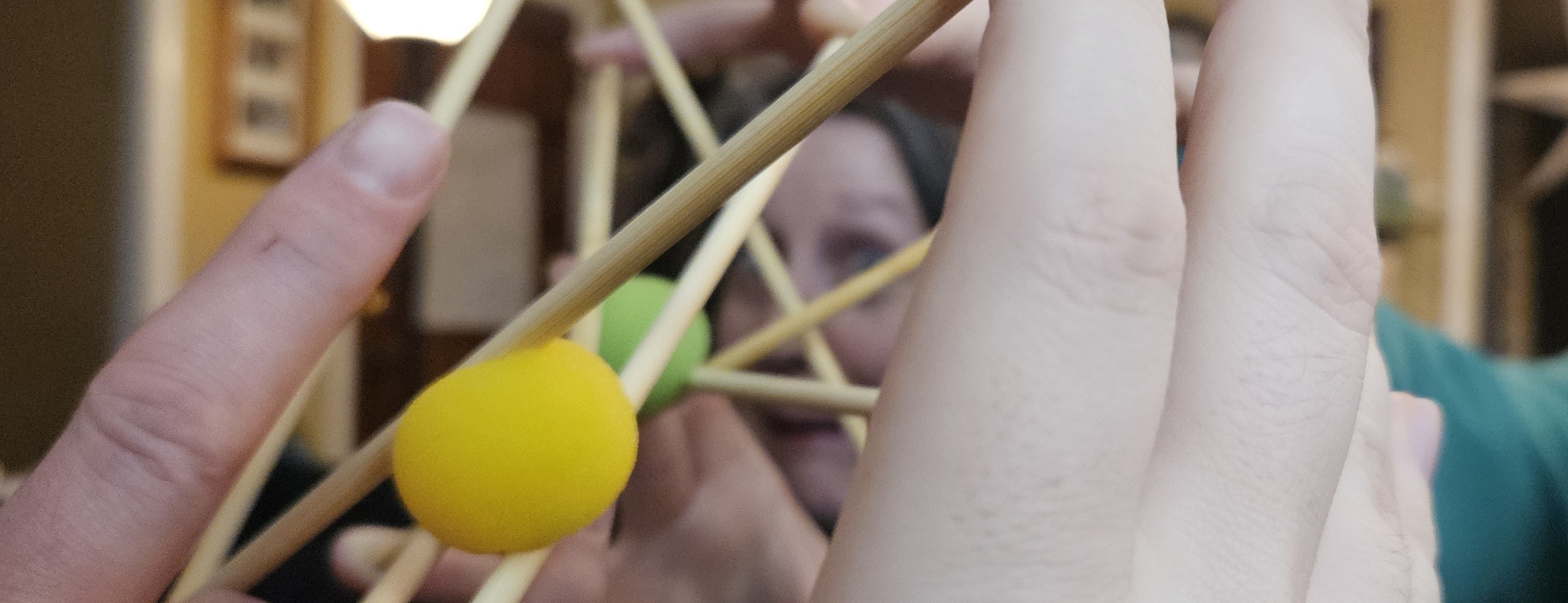 Even with adults, it only takes one go around the table, maybe two with a smaller group, before you start to feel it. Not only the burn, although Yubibo excels at finding the muscle groups that have atrophied from disuse. No, it’s the sheer jittery tension that comes from coordinating with other human beings, but not quite touching them. The sticks become power cables. Tension bridges. Bonsai wires. When someone in the group shifts — even when it isn’t someone you’re holding a stick with — you feel every movement, transmitted like a message through multiple intermediaries. Someone rolls their finger to accommodate a second stick and the entire collective vibrates.