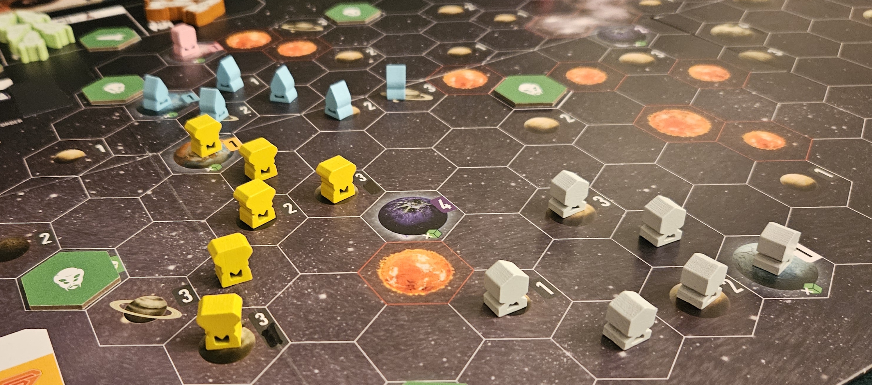 For the most part, anyway. I already mentioned the game’s phasiness and complexity and playtime. Personally, those are minor compared to the shenanigans it permits. As a game about putting cubes on hexes, it’s intriguing. But as a game about making half-understood treaties with technologically superior aliens, shafting your competitors with turn orders and negotiations alike, and not having to look at a single train engine, it’s unparalleled. Even if your shuttles keep rusting in the absence of oxygen or moisture.