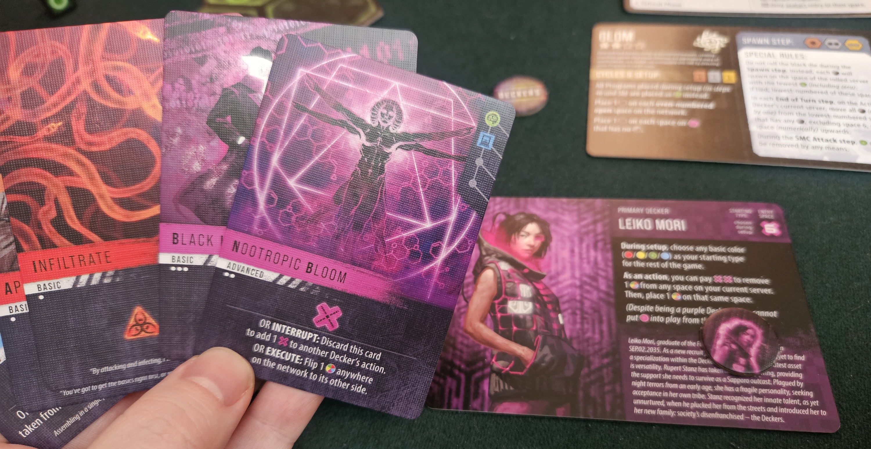 In a way, that’s what makes Deckers worthwhile. Because these folks could have taken a nap, too. Just look at them. Some of the game’s characters are classic cyberpunk. Leiko Mori is a chick in a leather vest illuminated by purple LEDs. Oshin Noro is more or less a samurai. Two of them are twins with USB-Zs plugged into their ears. But there’s an appropriate shlubbiness to the rest of the cast. Tilda Sweet cut my hair once. Monty Quantum is the guy who mains a druid. Hettie Magnetic is prediabetic. They’re a little more into body modification than the average Joe, but they’re surprisingly ordinary. It’s just that they’re willing to put their principles into practice when it comes to AI slop. Their solutions are messy workarounds. Sometimes they fall apart. And sometimes I cheat by drawing a different objective card because the last one read like a word problem. Hey, that’s why I play board games. Because they’re ours.