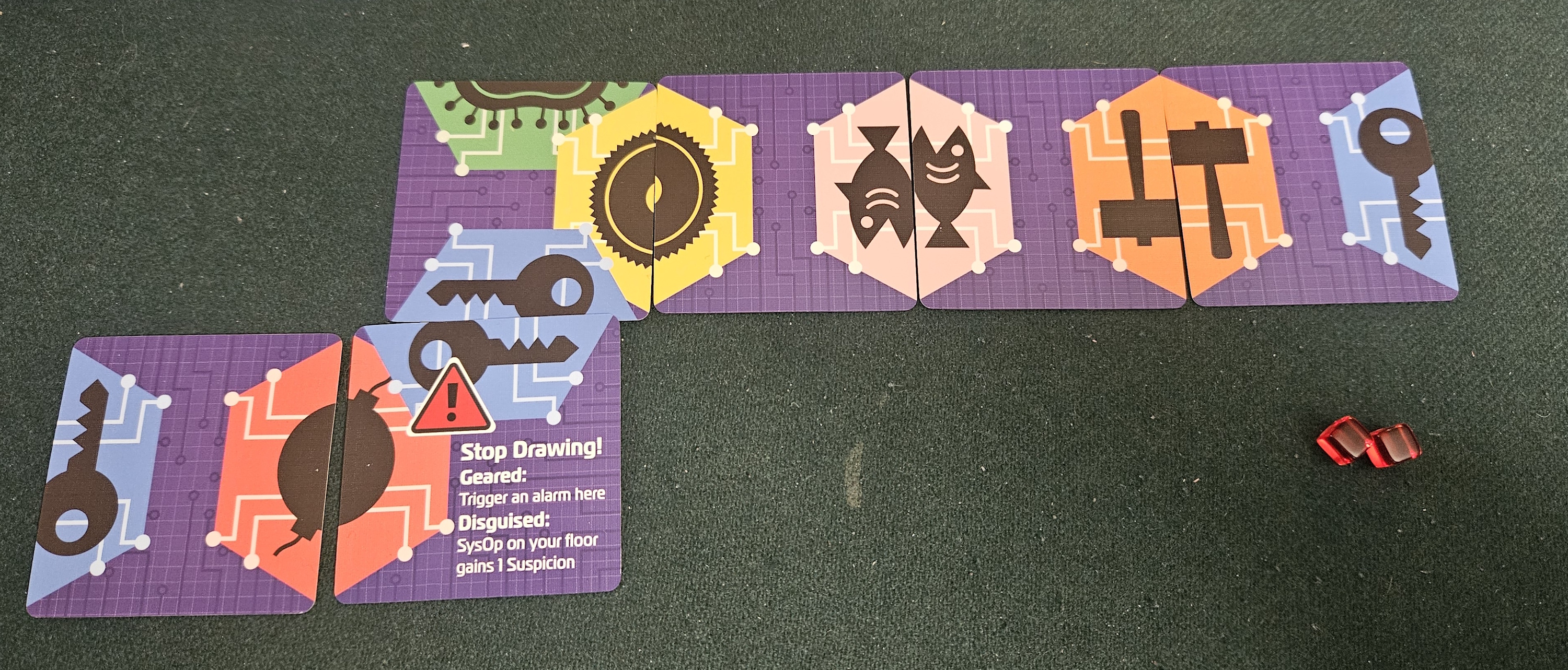 The biggest change comes in the form of those sysadmins. Where previous Burgle Bros staffed their facilities (and casinos) with generic rent-a-cops, Future Flip’s sysadmins are downright nefarious. Their basic programming is identical: they set a target, shuffle over to it, and then set a new target, perhaps wrecking your stealth tokens if they bumped into you along the way.
