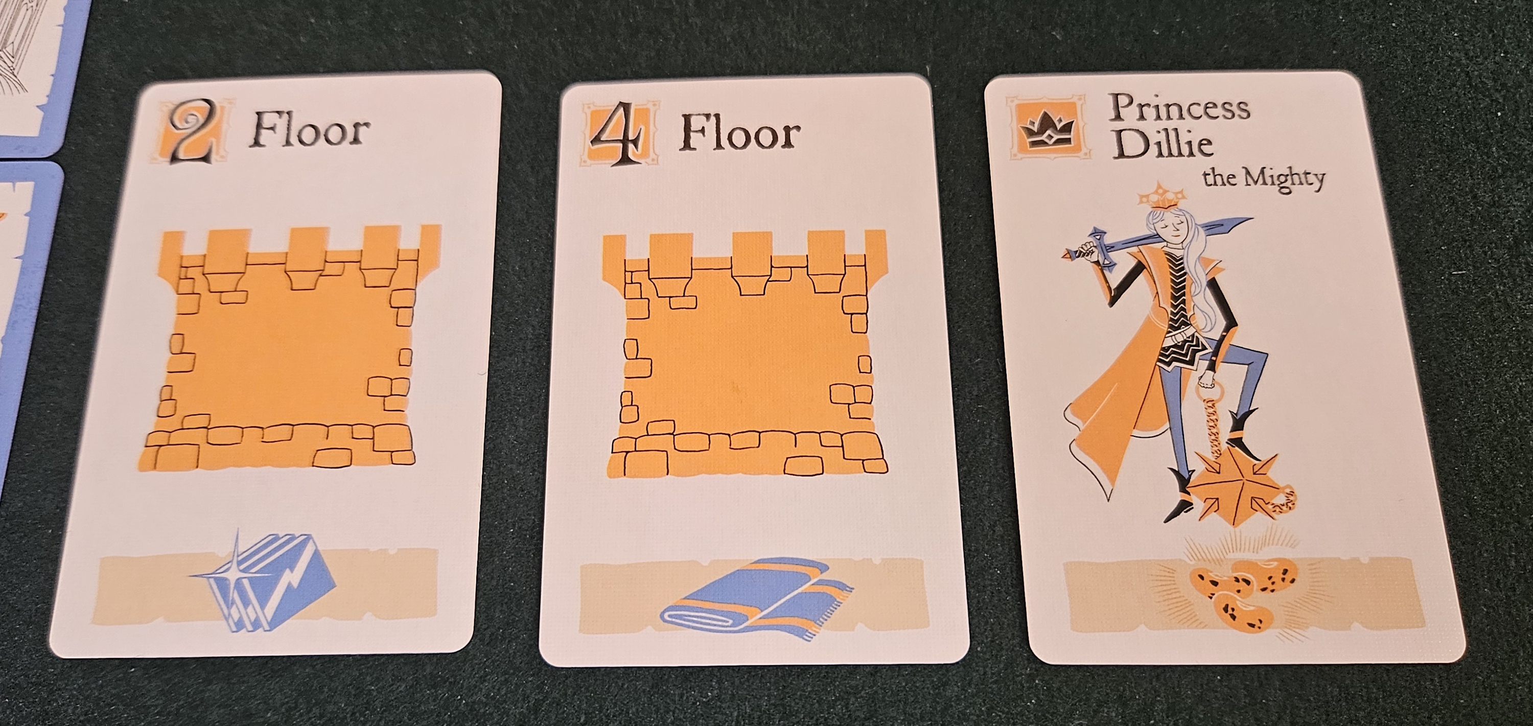 Speaking of princesses, the most interesting offering by far are the royalty cards. Each session assigns an objective to your queen, king, and princess. As their chambers are added to your towers, their points tend to compound. And compound. And compound. It isn’t uncommon for a single royal member to score as much in the endgame as a player earned at the midpoint tally.