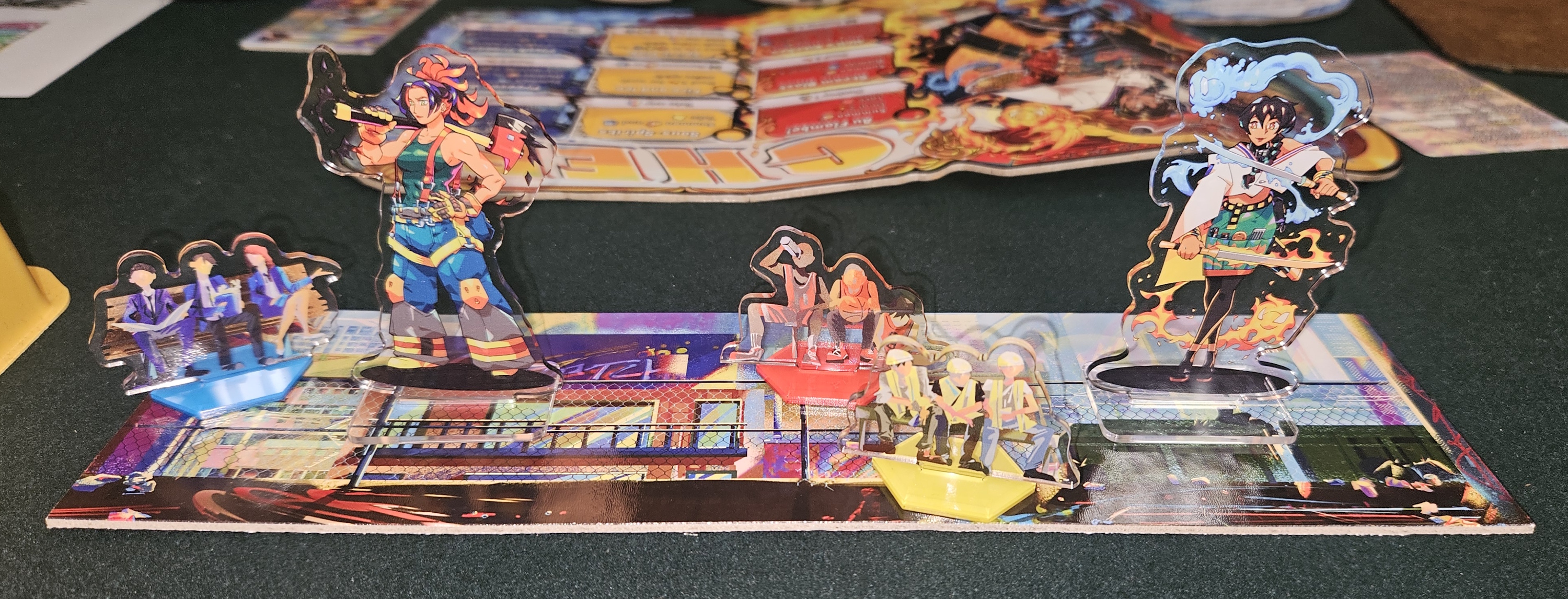 The gist behind Re;MATCH is that every fighter comes with their own arcade cabinet, complete with a standee — whose function, it must be said, is principally aesthetic — a few special tokens, and a fold-out broad displaying a unique set of moves.