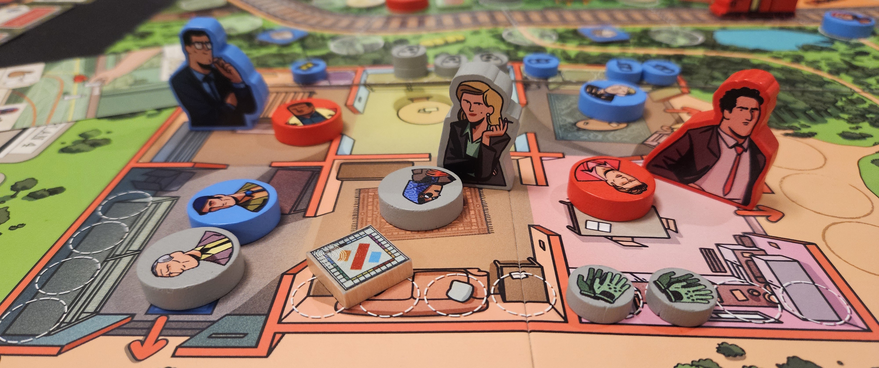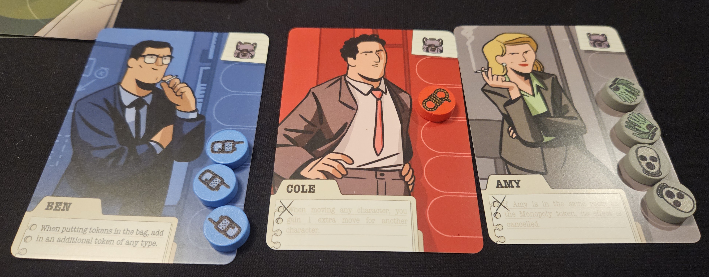 (Yes, the game does include the Monopoly board! It’s the main component in what is basically a miniature rondel game for the Coordinator. Evidence piles up whenever anybody is left in the room with the game. It’s very silly. But like many silly things that seem too goofy for fiction, it’s also what happened in real life, so I’m happy to see it included.)