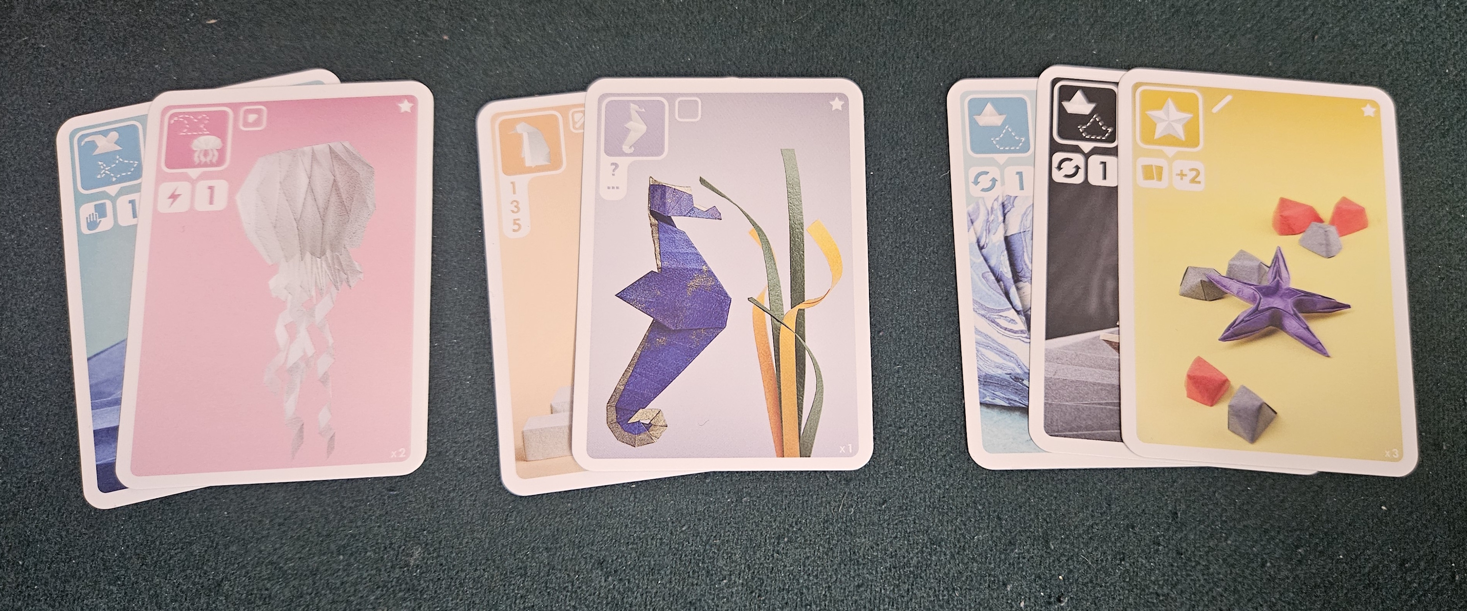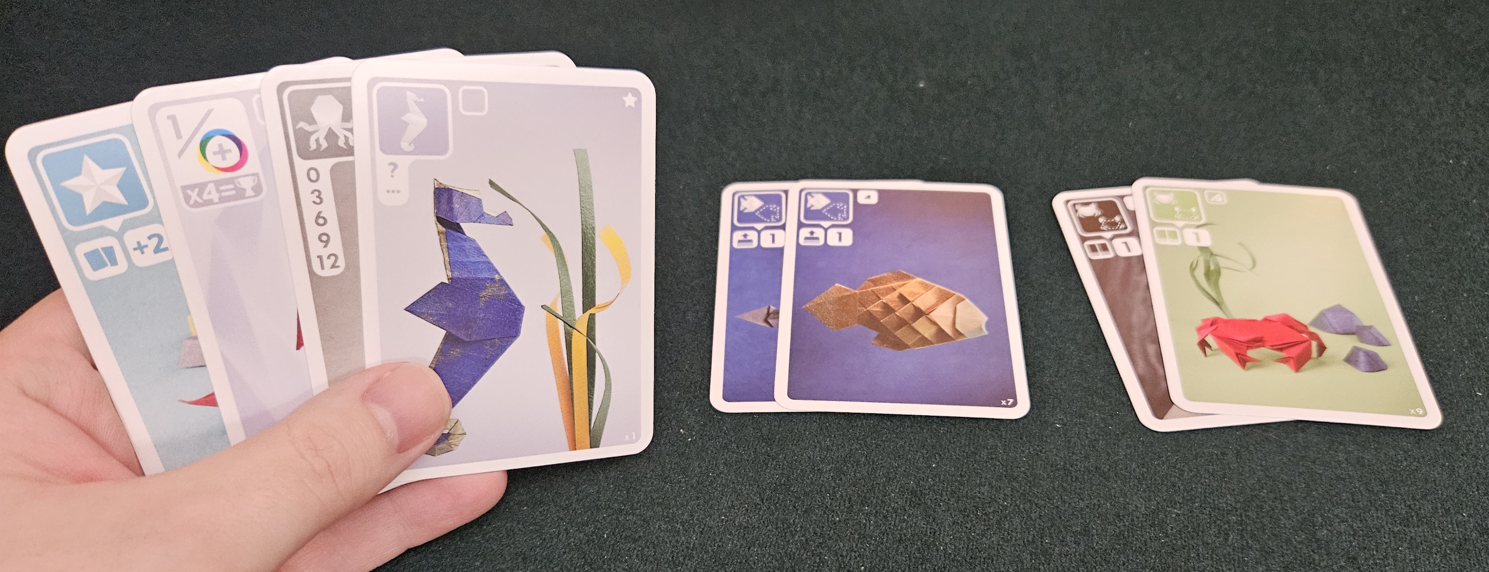 The expansions give it some much-needed kick. The first, Extra Salt, adds only a few cards, not enough to upset the delicate ecosystem of the original game, but sufficient to add at least a few decisions. Extras like a lobster or a jellyfish pair with previously-obvious offerings to produce new effects, while a seahorse makes certain sets more worthwhile and starfish can be added to a duo to drop their ability in exchange for some extra points. The game is still sleepy, but the decision-space is a little denser.