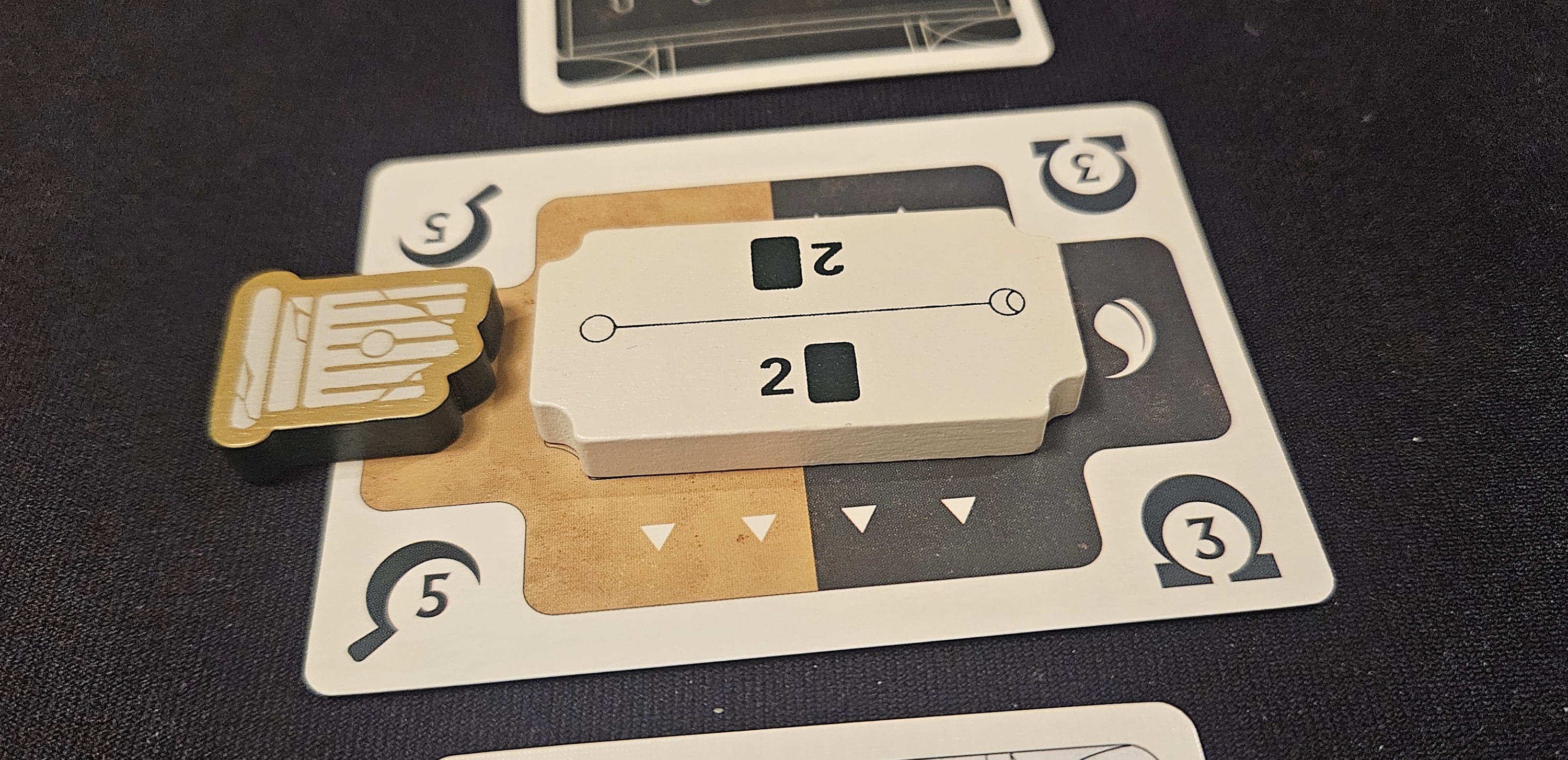 The idea is wonderfully simple. There are three lanes between players. Each lane has two separate scoring values. In all cases, one is higher than the other. Most of the time, the distance between them is so great that the lower range dips into negative points.