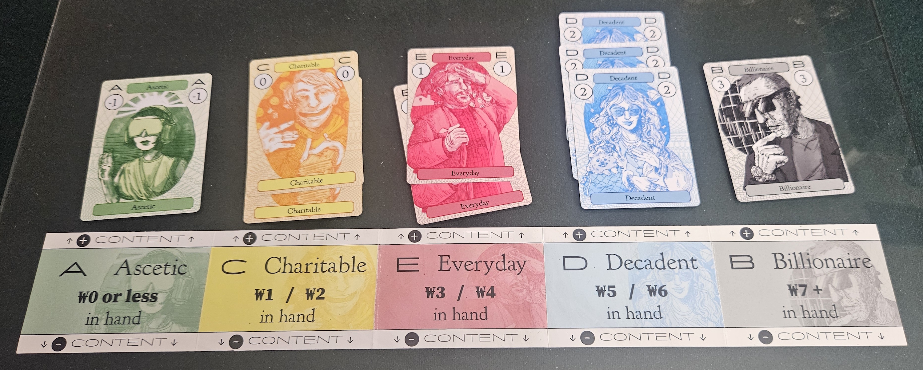 Fine, fine. But while Wendybuxxx isn’t easy to describe, it’s easier than you might think from description alone. Like the card manipulations in Molly House, Wendybuxxx is all about motion. If two influencers are dumping loads of content into the billionaire category, there’s a good chance their hands are stuffed with enough cards to qualify them as billionaires. Maybe you can get in on the fun by scrounging up enough cards to nibble at their extras. Or maybe splitting an audience isn’t your style, so you focus on something totally different, instead blinging yourself out in jewelry. Or maybe it’s time to sabotage their efforts by tweaking the other categories upward, turning billionaire into the social pariah it deserves to be.