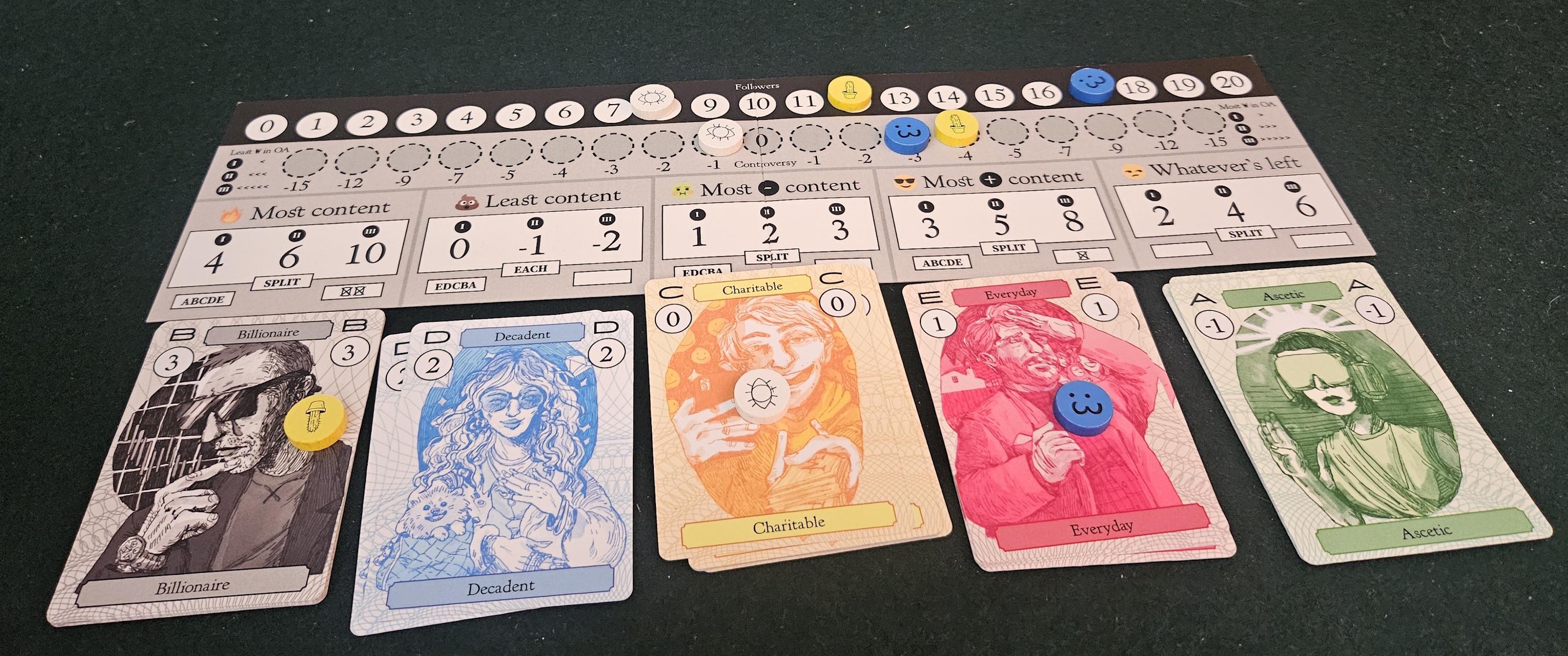 (III) To churn Everyday content into as many millions of followers as possible, I want to ensure the right cards find their way to the corresponding space on the content bar. This is usually done by generating lots of positive content, but in a pinch heaps of negative content will do. Negative content also has the additional bonus of being secret. No meddling from rival influencers!