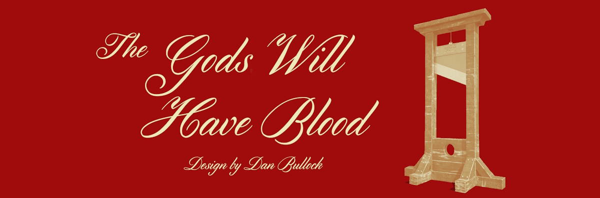I can’t speak to whether The Gods Will Have Blood, the latest game by Dan Bullock, is a faithful adaptation of Anatole France’s Les Dieux ont soif, but it evokes sensations that only rarely creep into our hobby from literature. Perhaps it would be better to call it an abridgement. At only twenty minutes in length (if that), it packs terrible questions into a pressure cooker that threatens to pop with every flipped card and drawn cube.